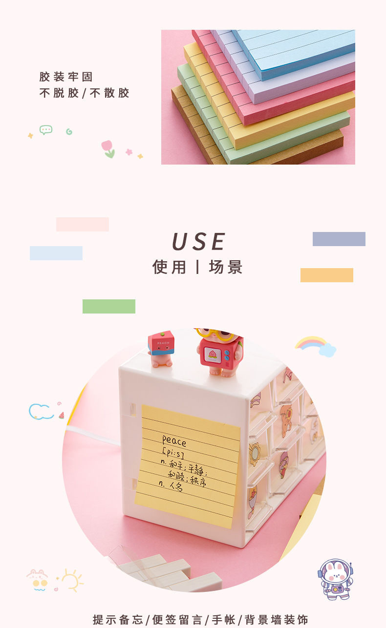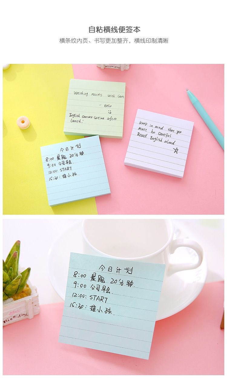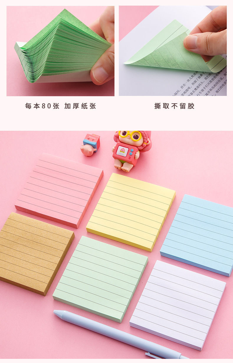 컬러 수평 라인 포스트잇 노트 학생 다기능 찢어지기 쉬운 노트 사무실 노트 메모 메시지 스티커 문구 도매스토어 가기