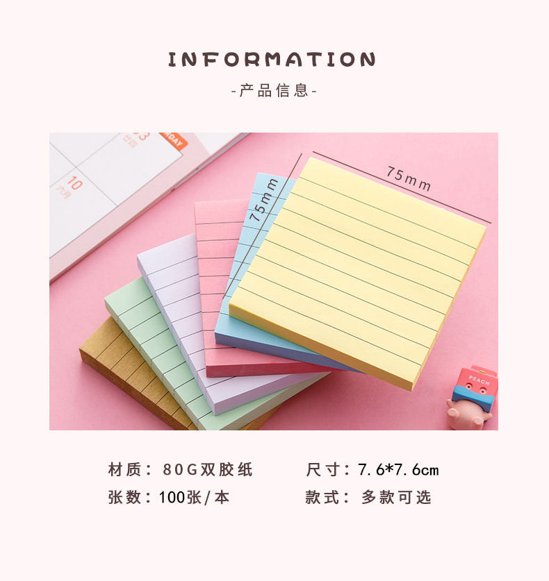 컬러 수평 라인 포스트잇 노트 학생 다기능 찢어지기 쉬운 노트 사무실 노트 메모 메시지 스티커 문구 도매