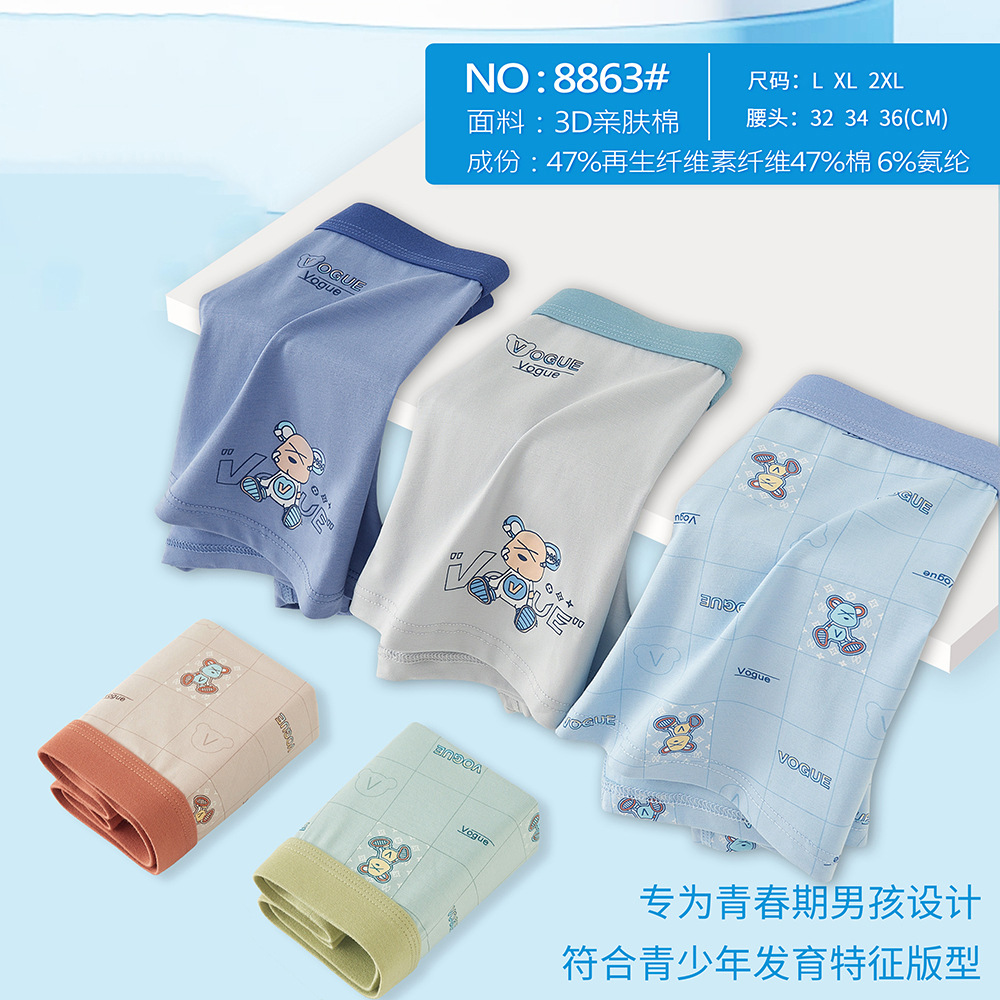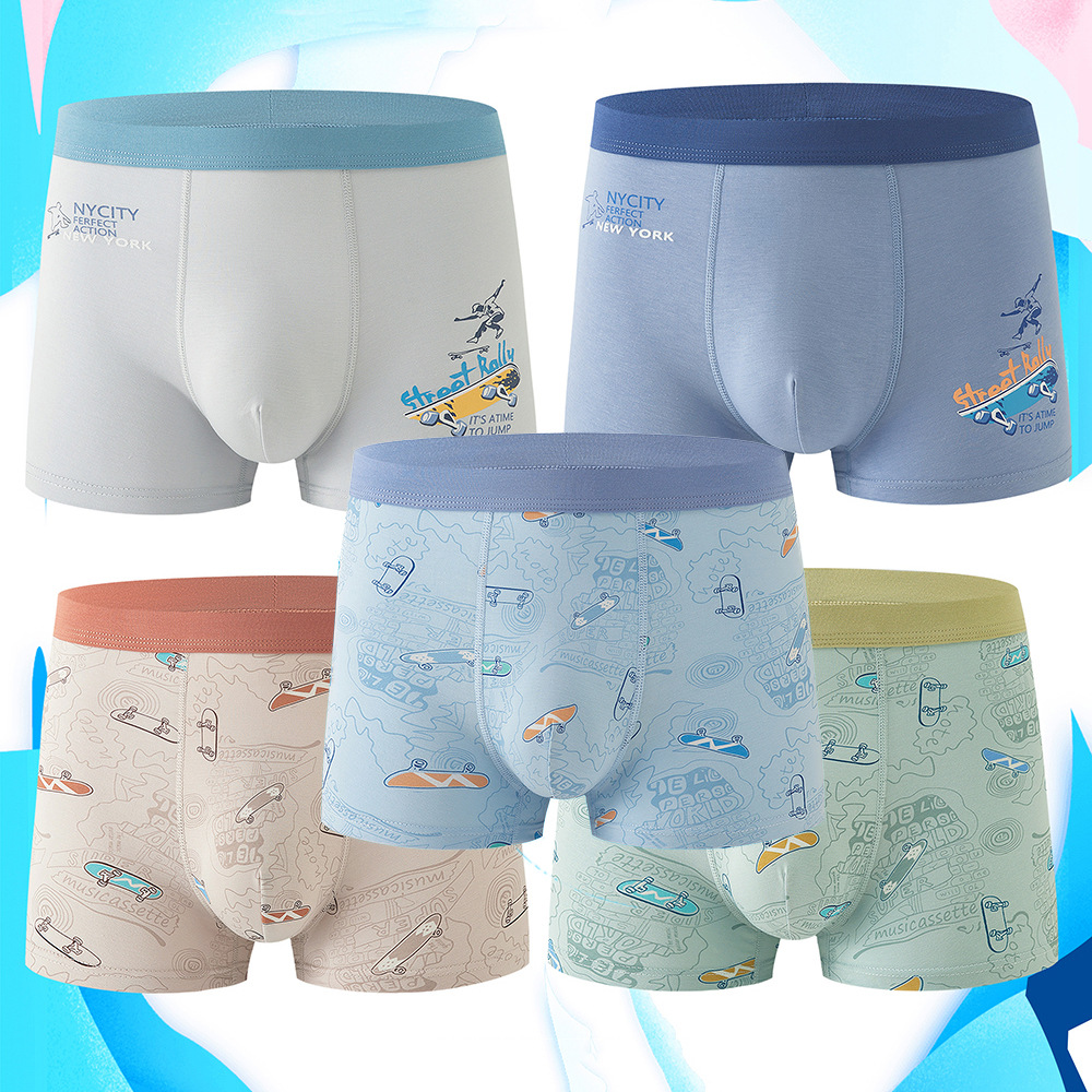 중학교 속옷 주니어 소년과 소년 만화 통기성 피부 친화적 인 측면 원활한 면화 남자 복서스토어 가기