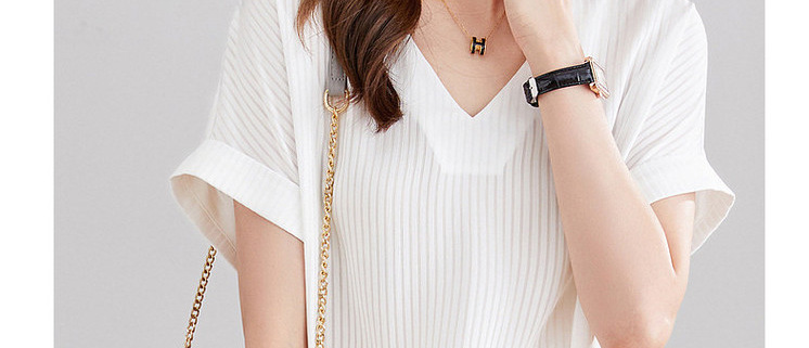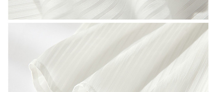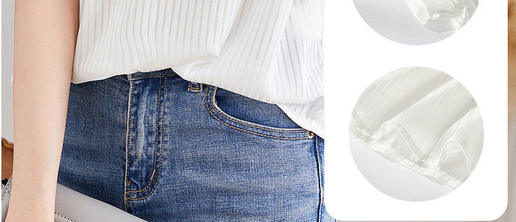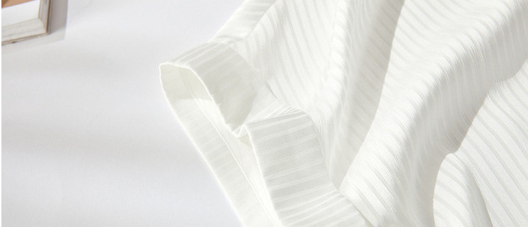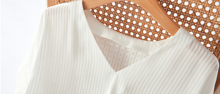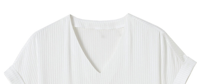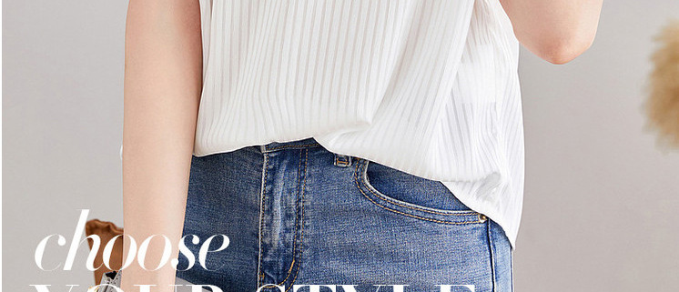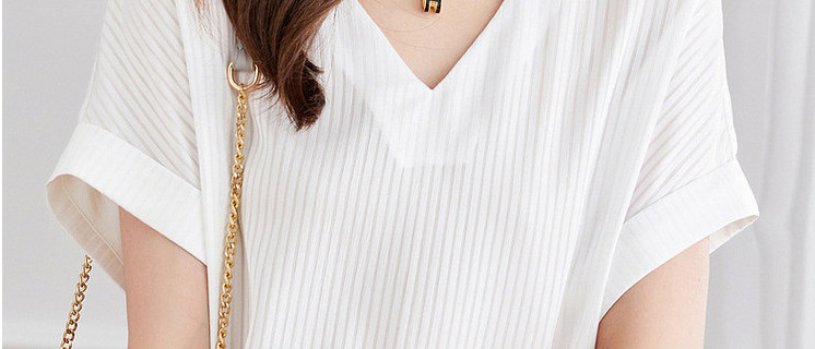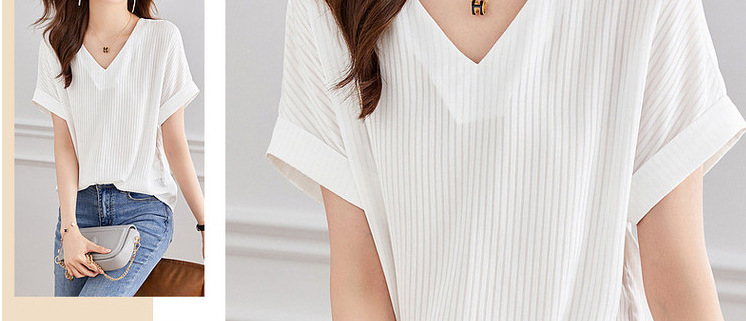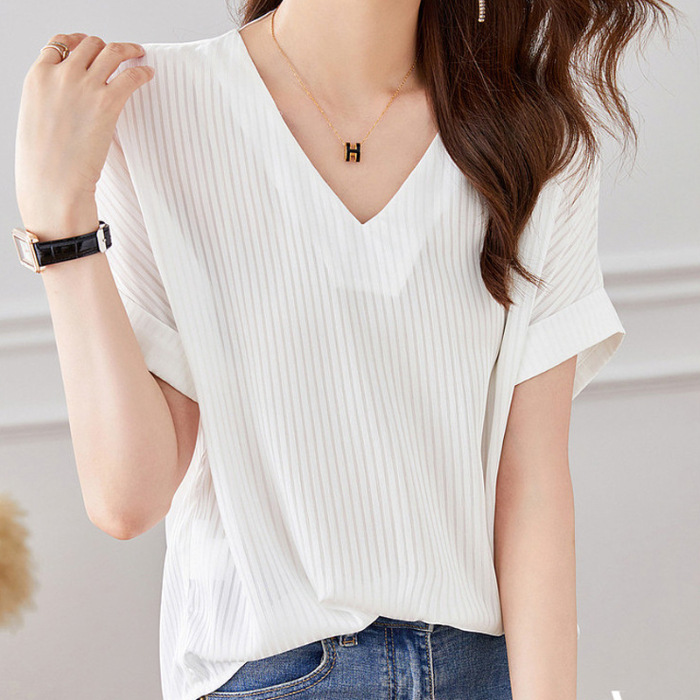 여성을위한 v 넥 반팔 흰색 쉬폰 셔츠 2024 여름 새로운 느슨한 대형 스타일 프렌치 스트라이프 다목적 탑
