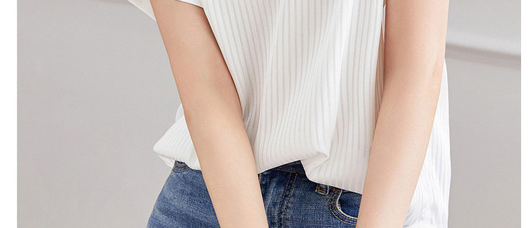여성을위한 v 넥 반팔 흰색 쉬폰 셔츠 2024 여름 새로운 느슨한 대형 스타일 프렌치 스트라이프 다목적 탑스토어 가기