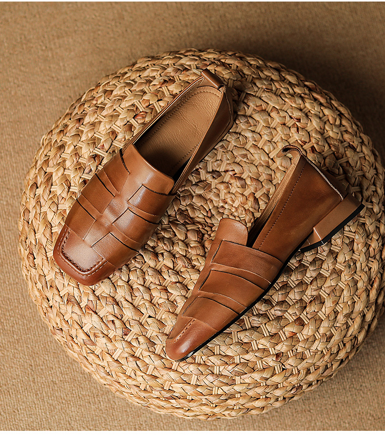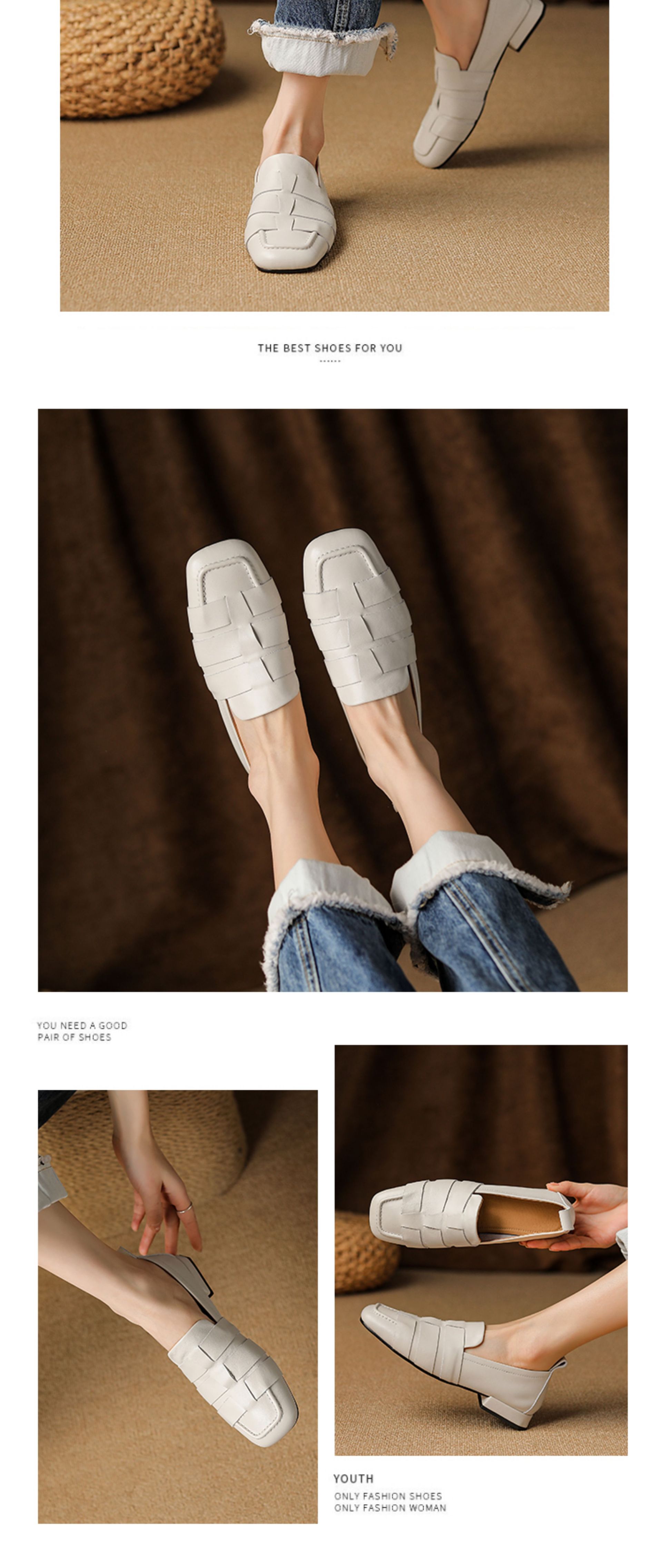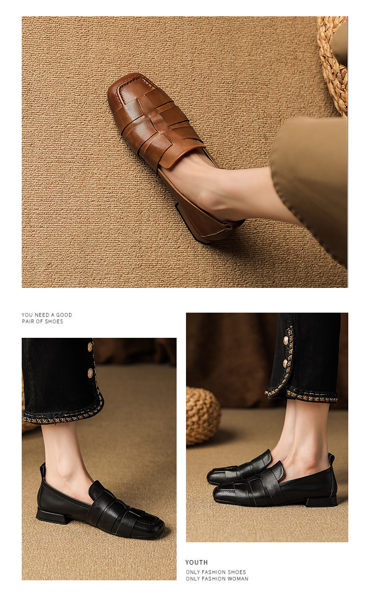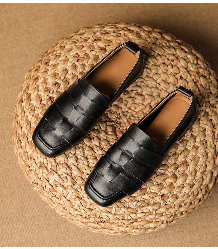 플러스 사이즈 여성 신발 41-43 틈새 디자인 부드러운 가죽 플랫 신발 짠 깊은 입 페달 로퍼스토어 가기