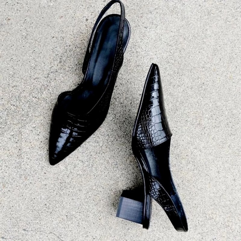 대외 무역 2023 새로운 여름 복고풍 플러스 사이즈 뾰족한 통근 섹시한 중간 굽 Baotou 샌들 여성의 체크 두꺼운 굽