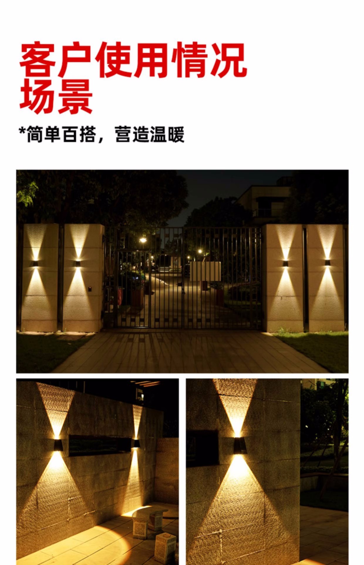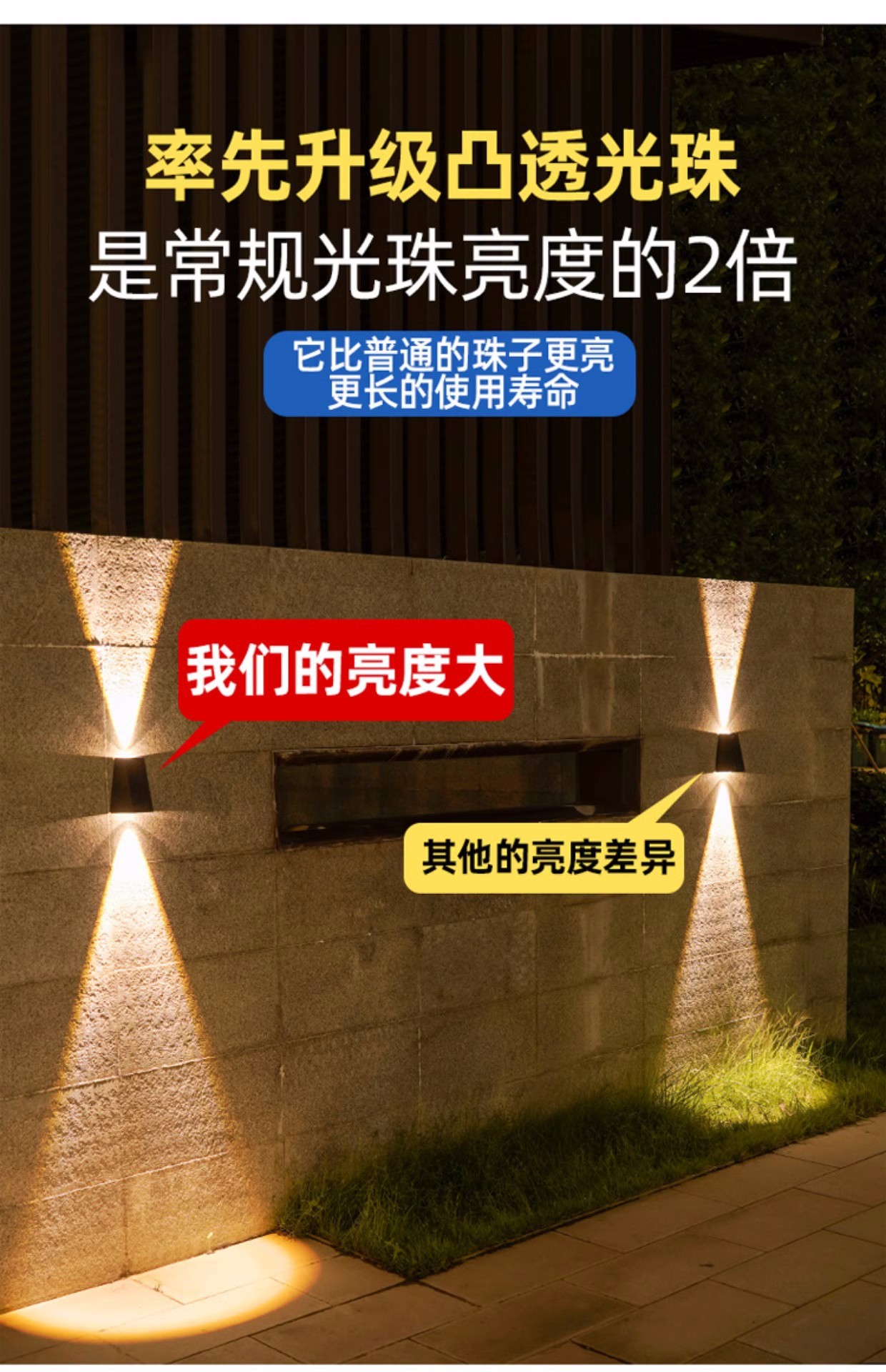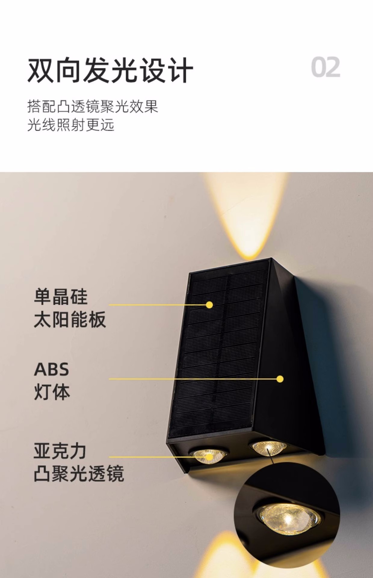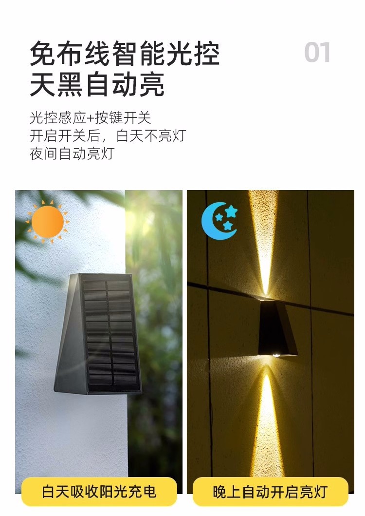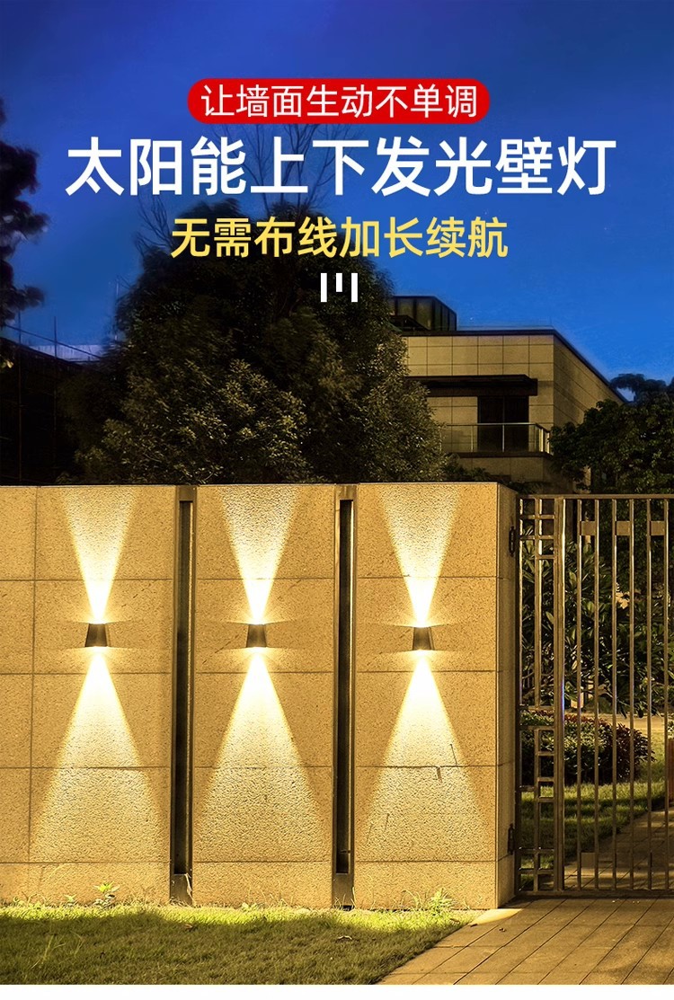 太阳能户外壁灯庭院景观夜景氛围装饰别墅花园墙壁室外防水洗墙灯