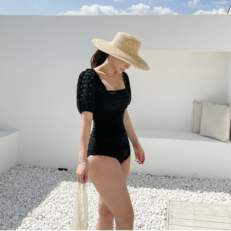 수영복 순수 소원 온천 보수적 2023 섹시한 어깨 반팔 원피스 수영복 바람 수영복 공장 도매스토어 가기