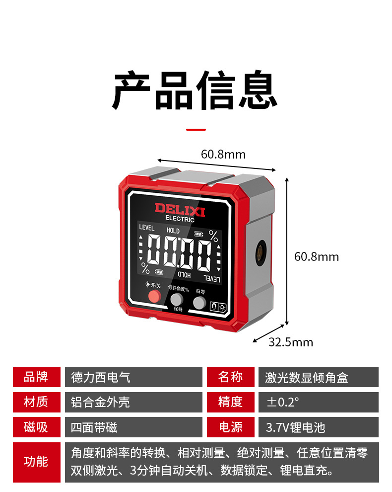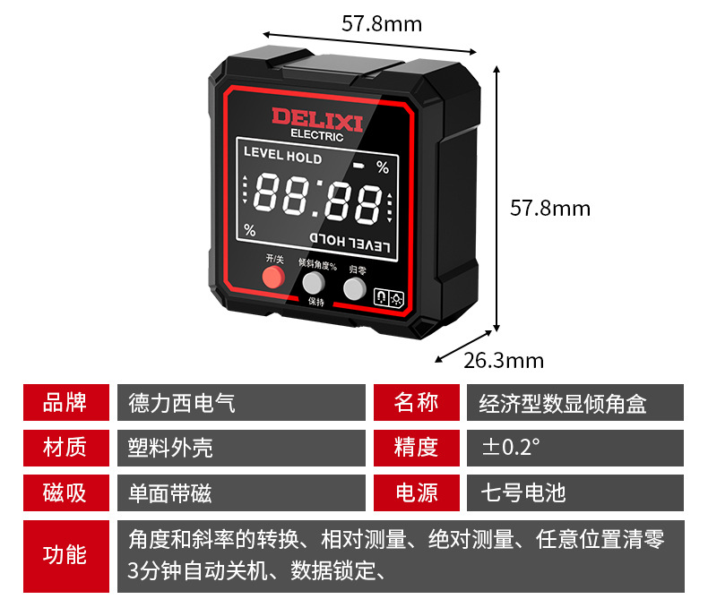 德力西 数显倾角盒 量角器数显倾角仪倾角盒 角度仪 坡度仪 水平仪