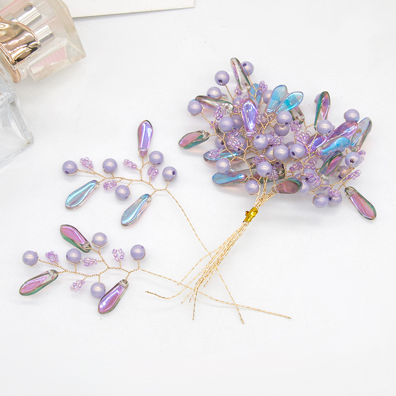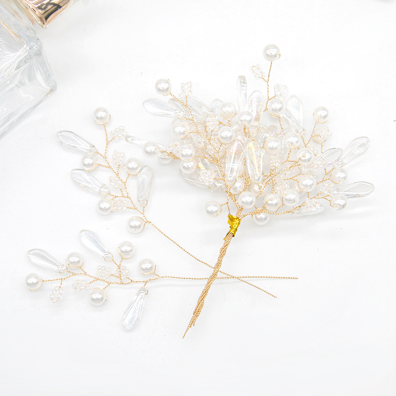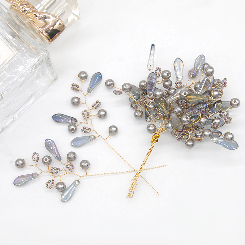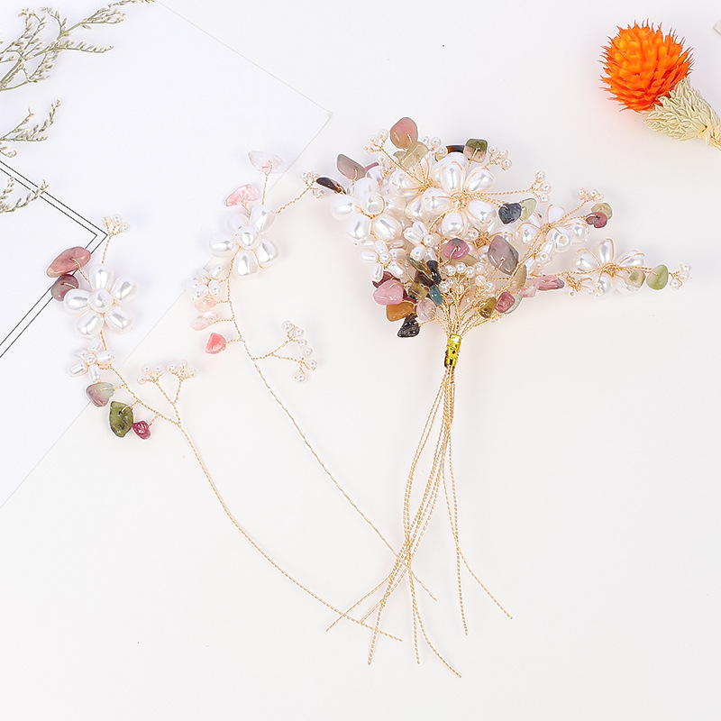 Guofeng 버전 진주 머리핀 펜던트 색상 물방울 구리 와이어 감기 꽃 가지 꽃 DIY 순수 수제 짠 모자