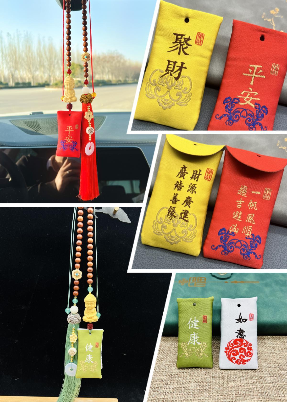 회양목 핑안 부처 자동차 펜던트 향 주머니 핑안 자동차 인테리어 백미러 펜던트 쥬얼리 원래 자동차 교수형스토어 가기
