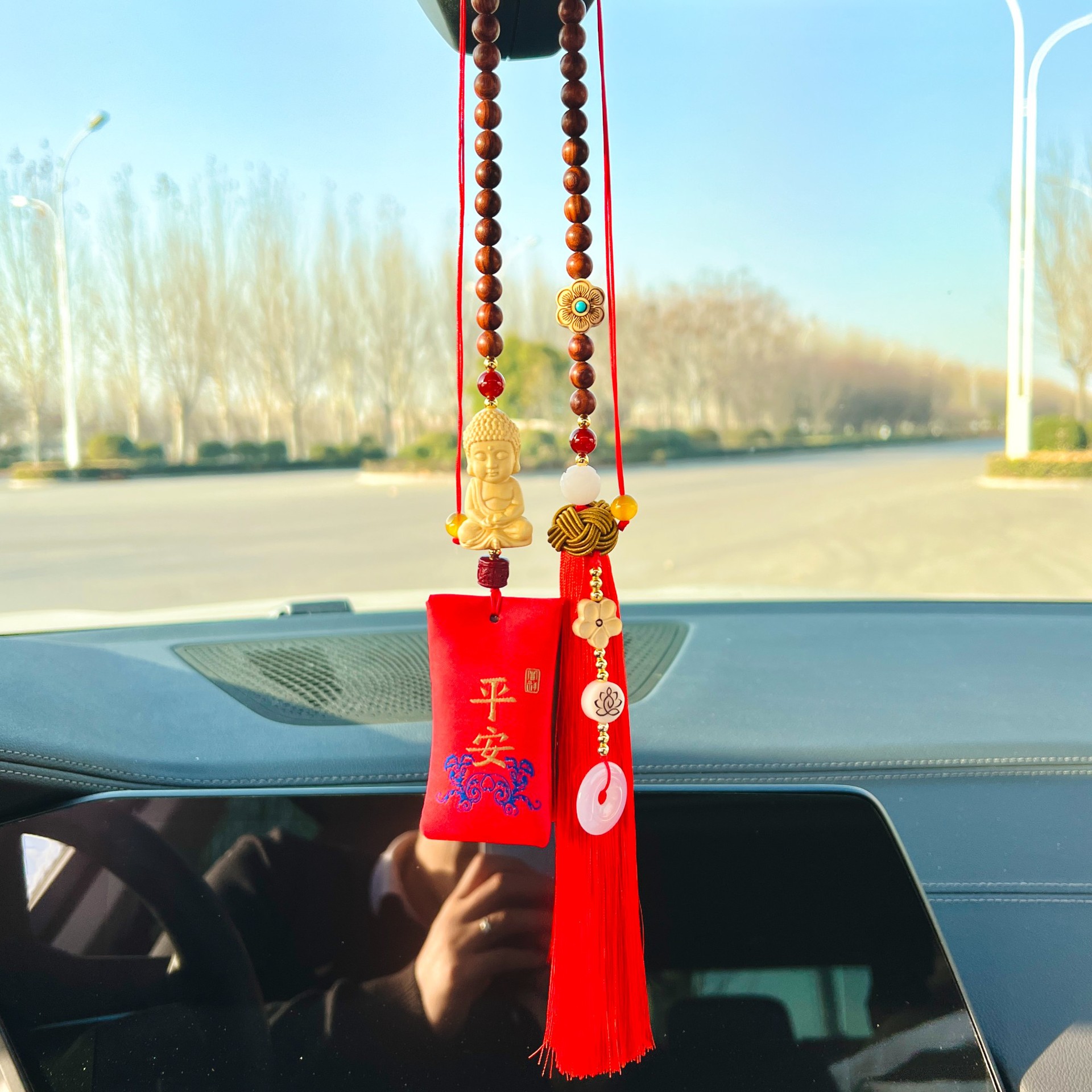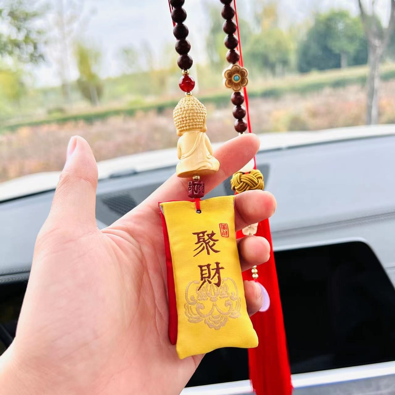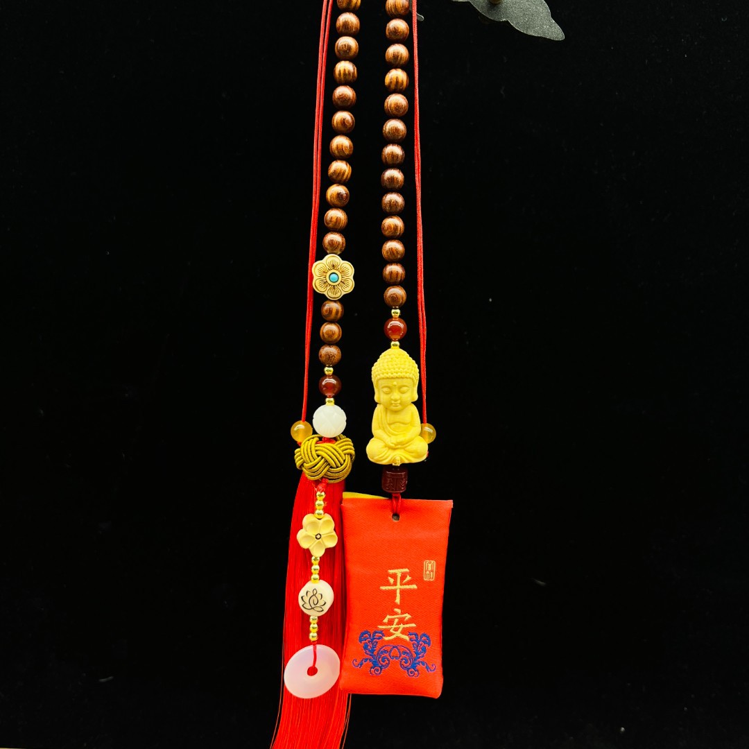 회양목 핑안 부처 자동차 펜던트 향 주머니 핑안 자동차 인테리어 백미러 펜던트 쥬얼리 원래 자동차 교수형