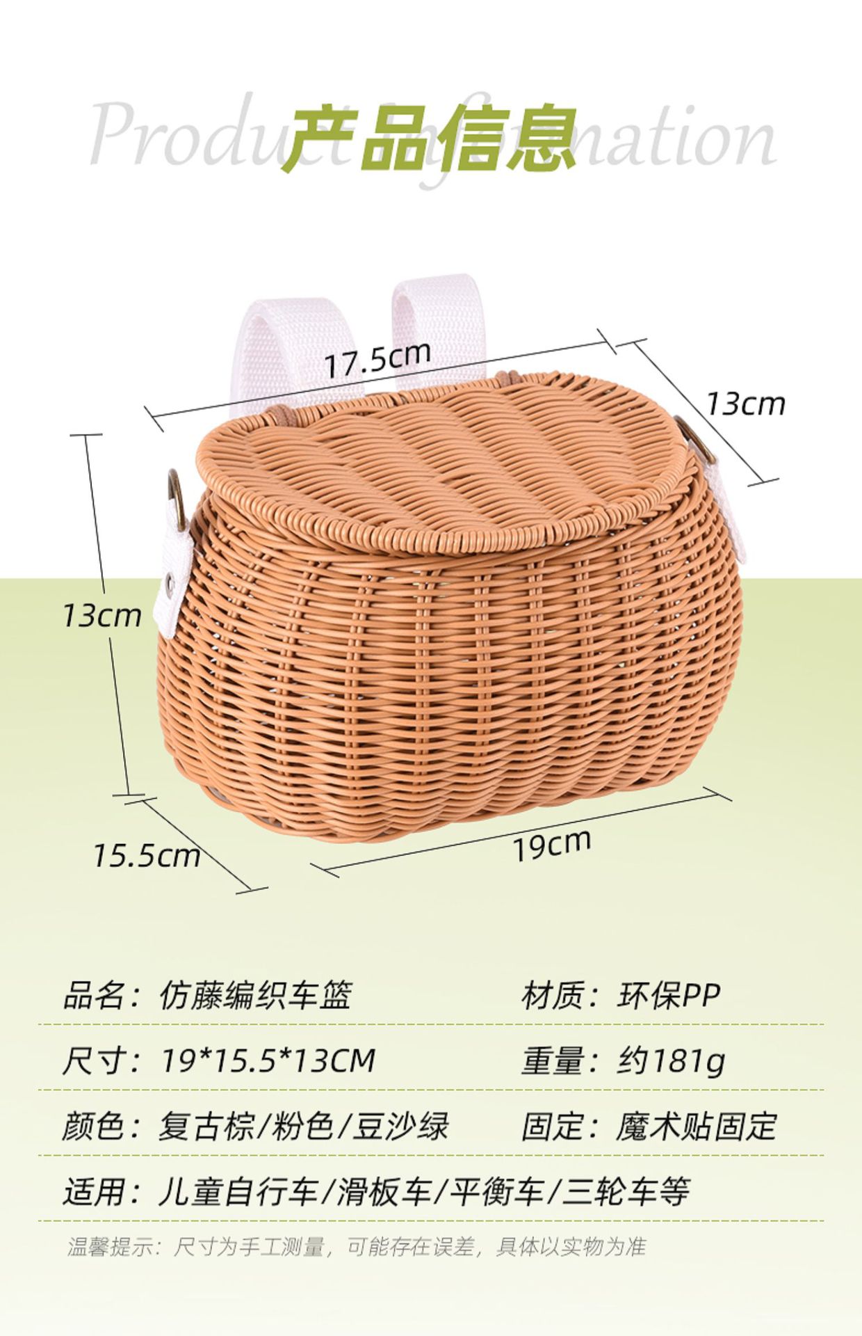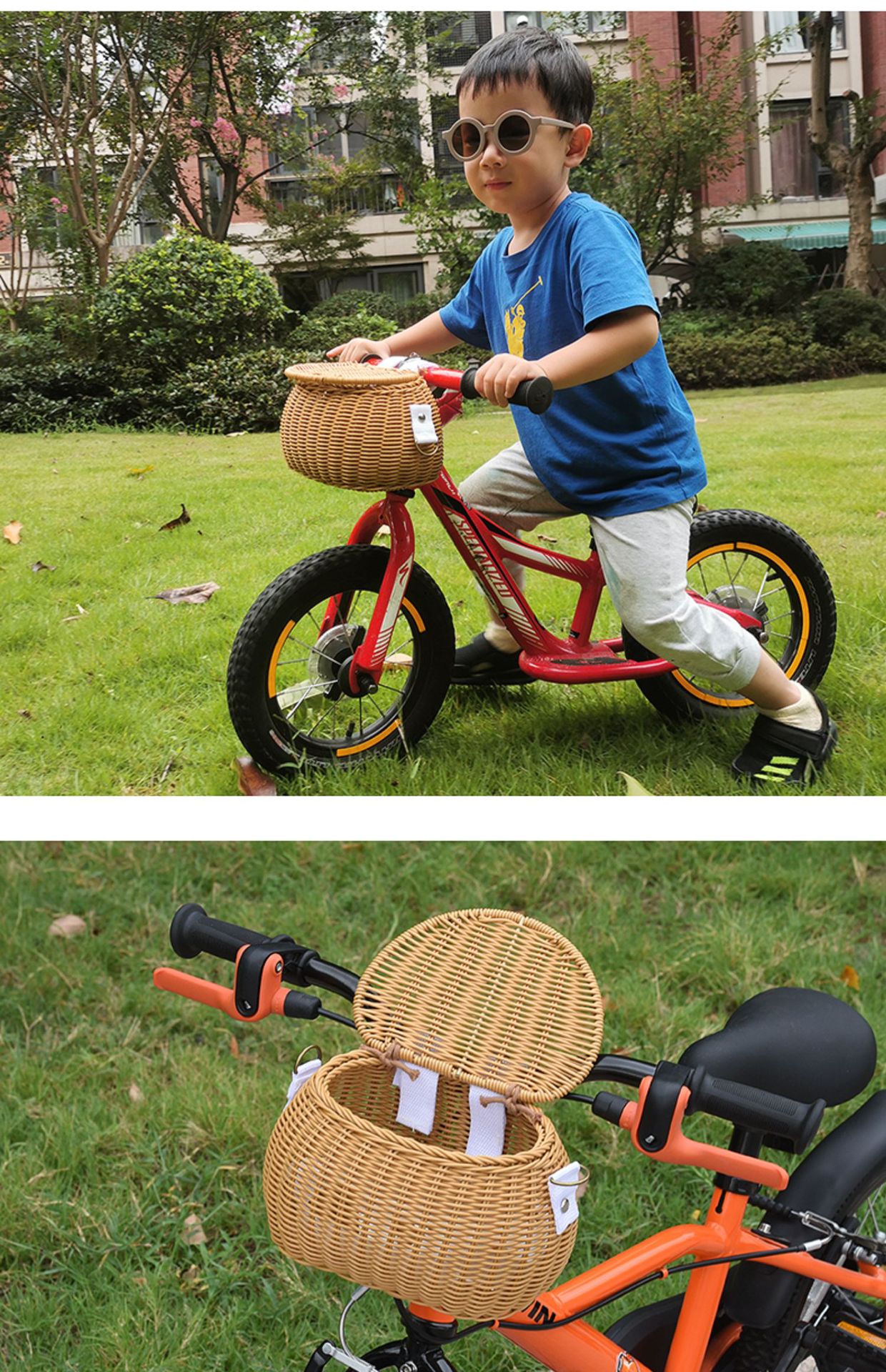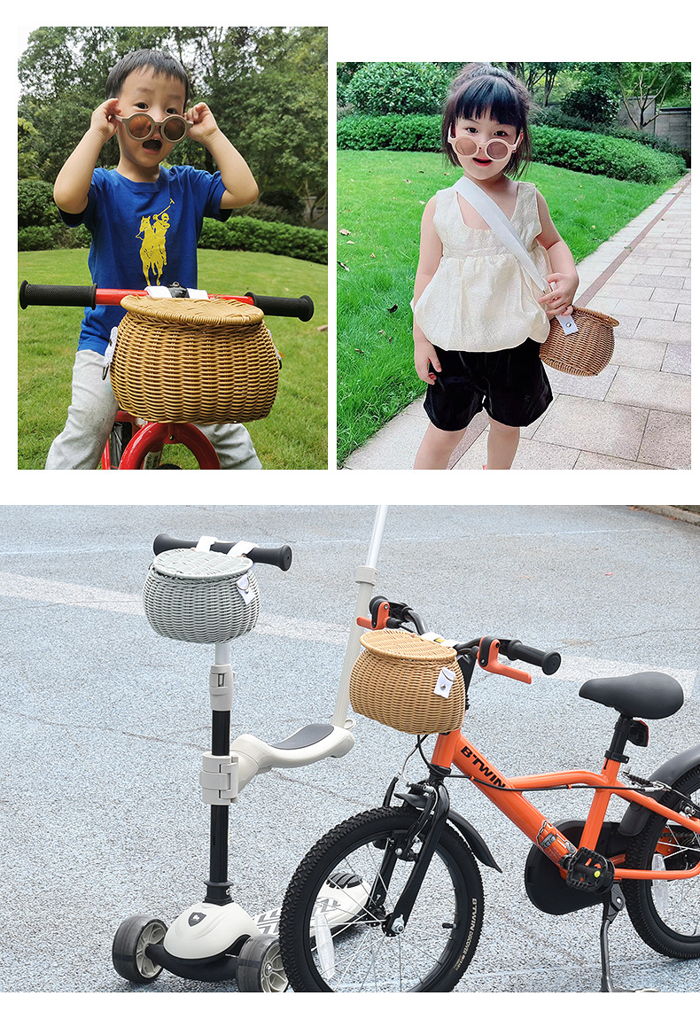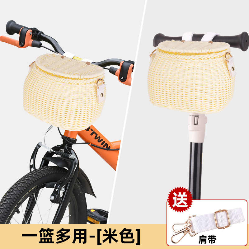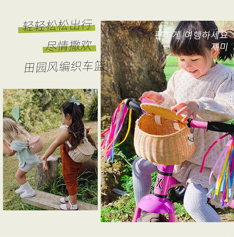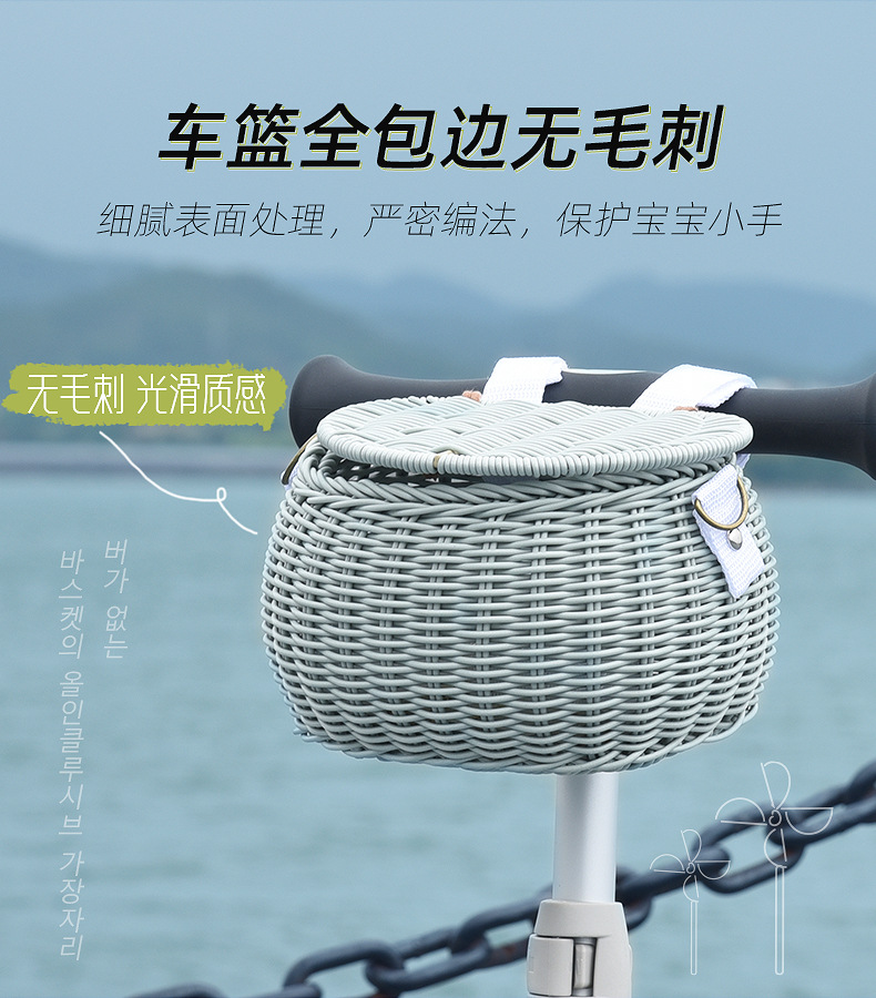 Ins 어린이 자전거 바구니 균형 자동차 손으로 짠 앞 바구니 커버 스쿠터 아기 자동차 앞 바구니스토어 가기
