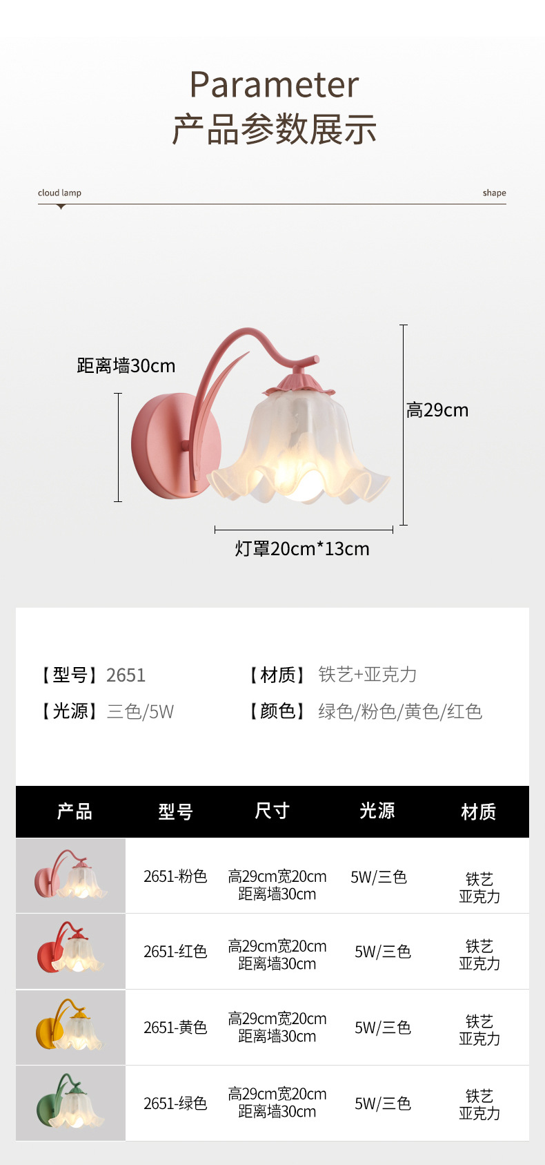 • 2651-핑크 29CM-three-color 빛 변화 5W-Full Spectrum