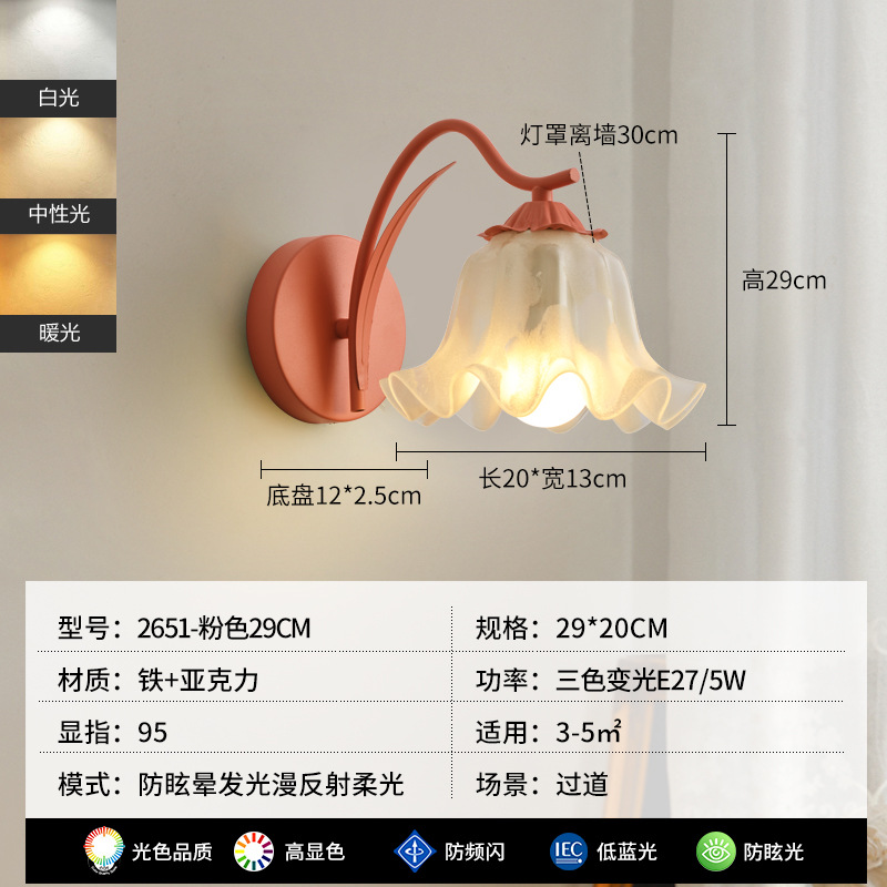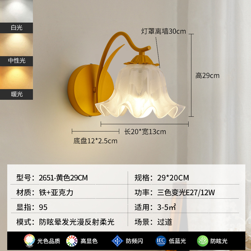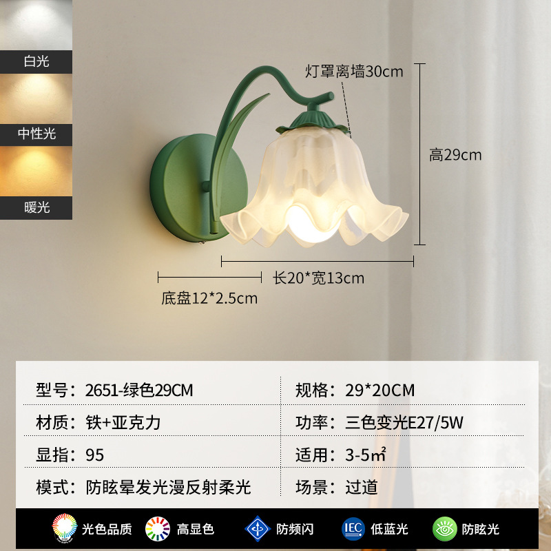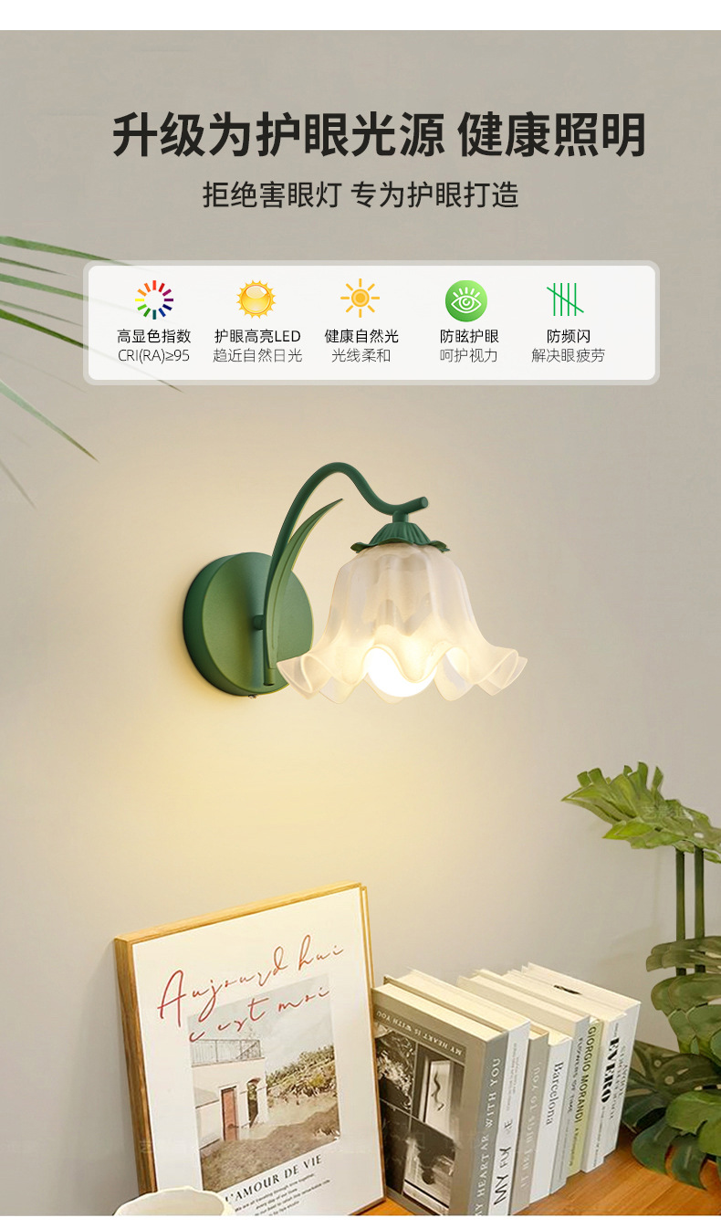 순수한 상품 릴리 벽 램프 침대 옆 램프 현대 미니멀 프랑스 거실 배경 벽 램프 2651 그림 800*800스토어 가기