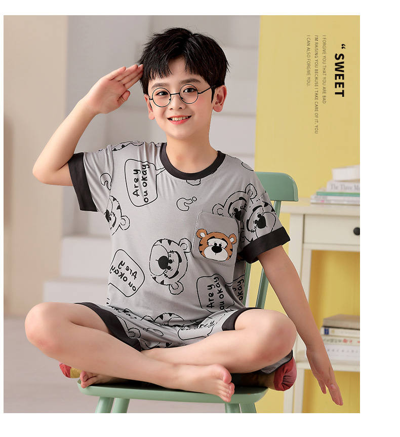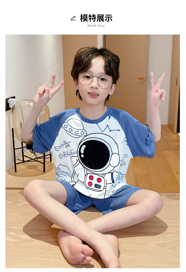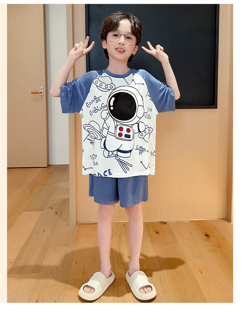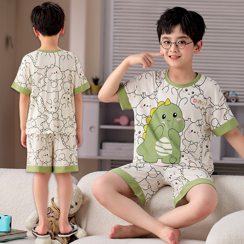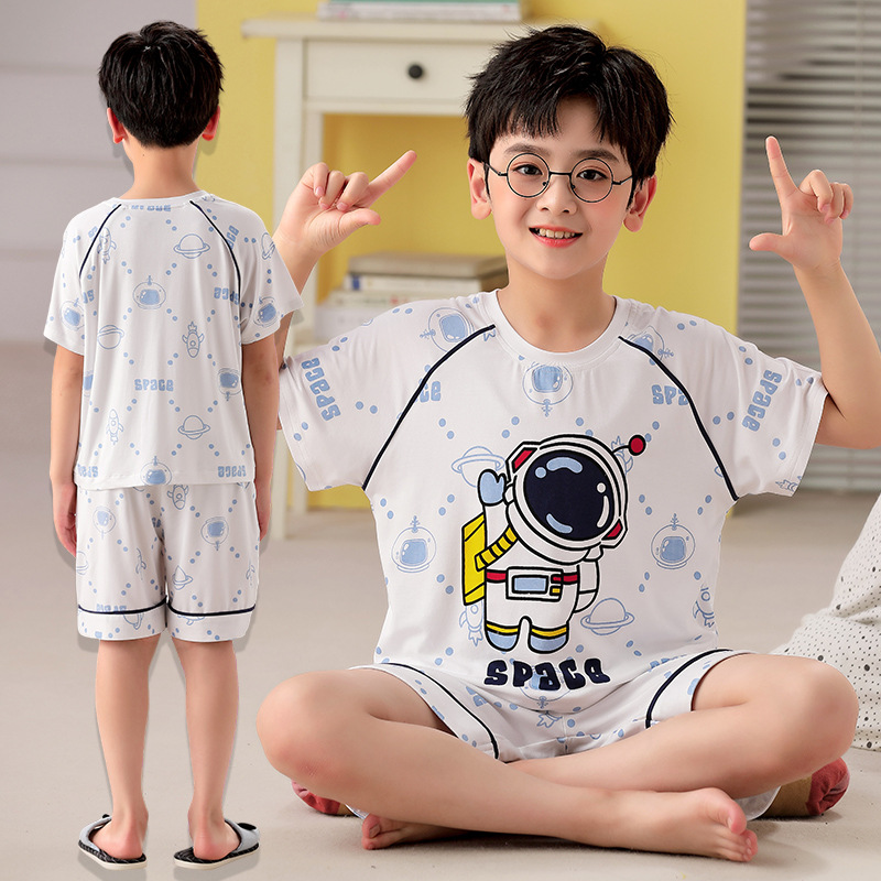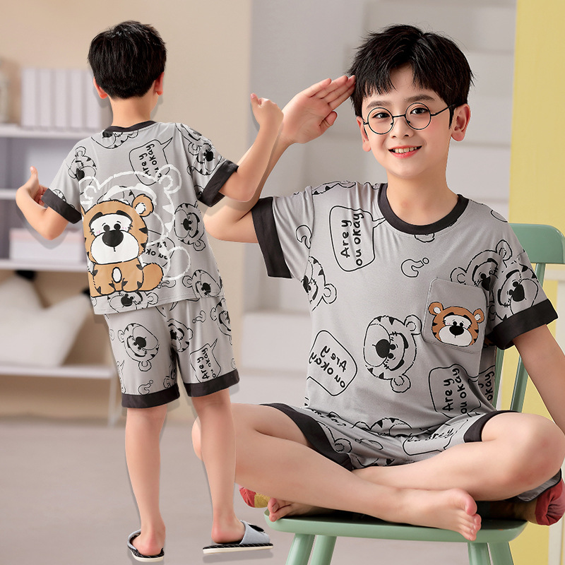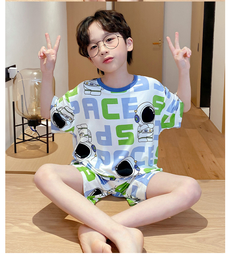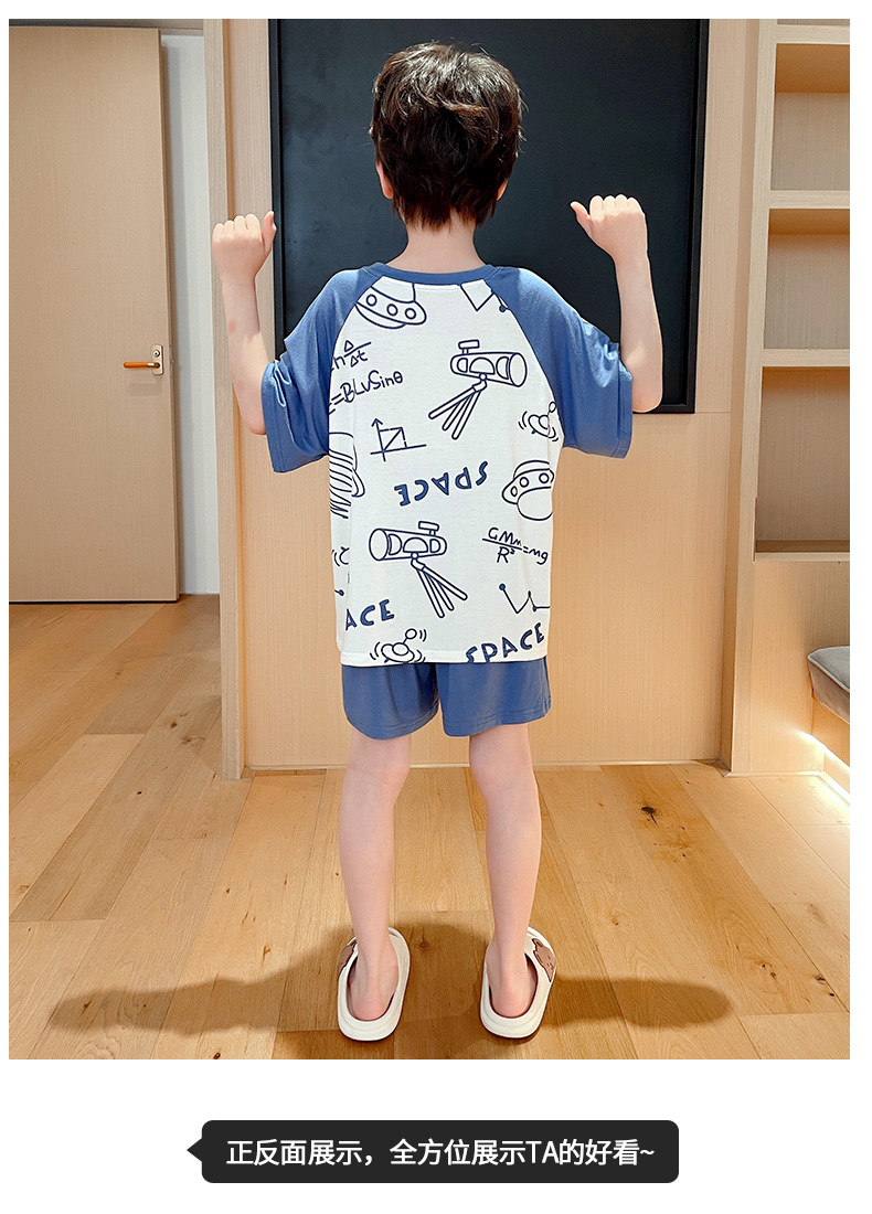 2025 뉴 보이즈 잠옷 어린이 여름 초박형 반팔 모달 소년 중 · 대형 아동용 홈 의류 세트스토어 가기