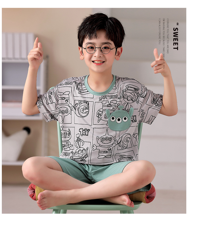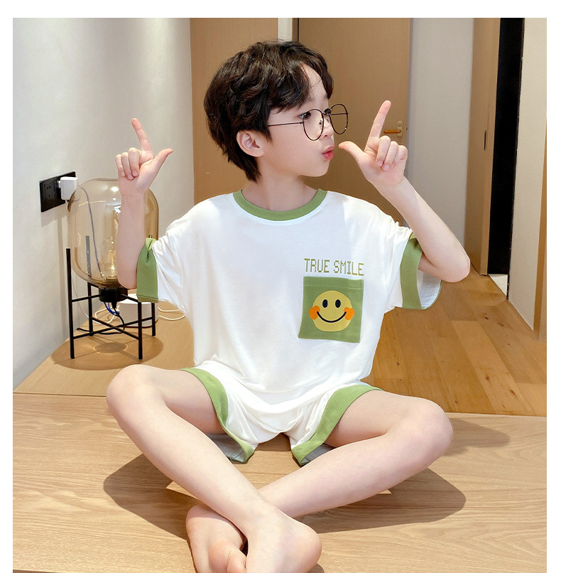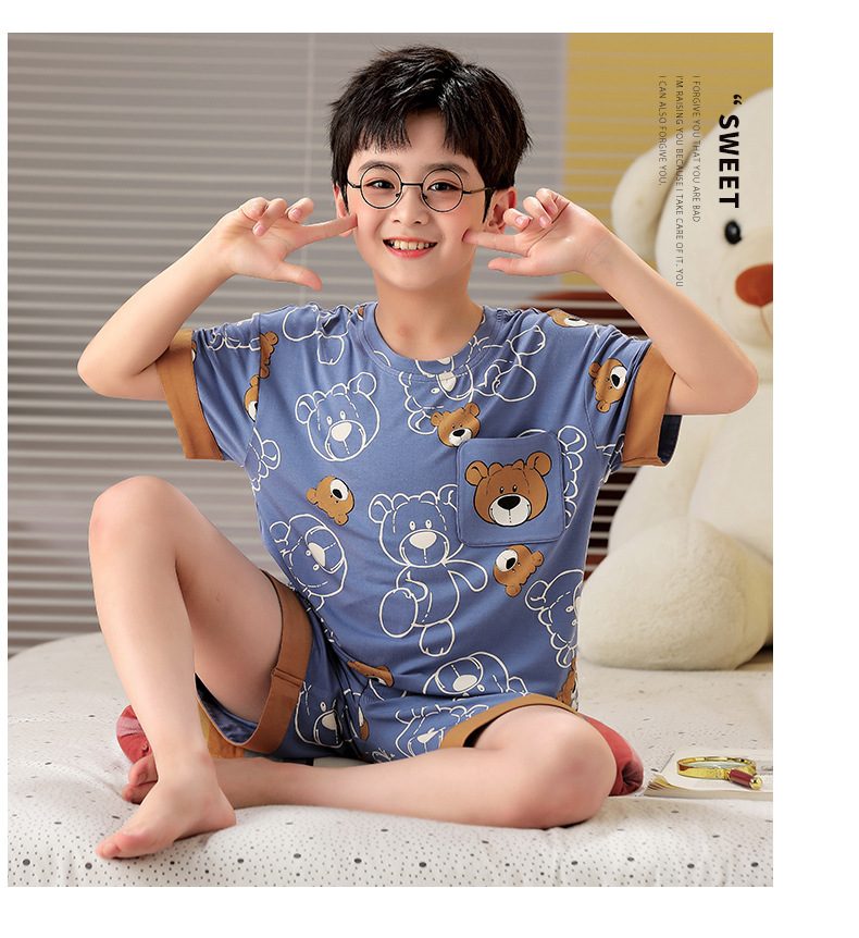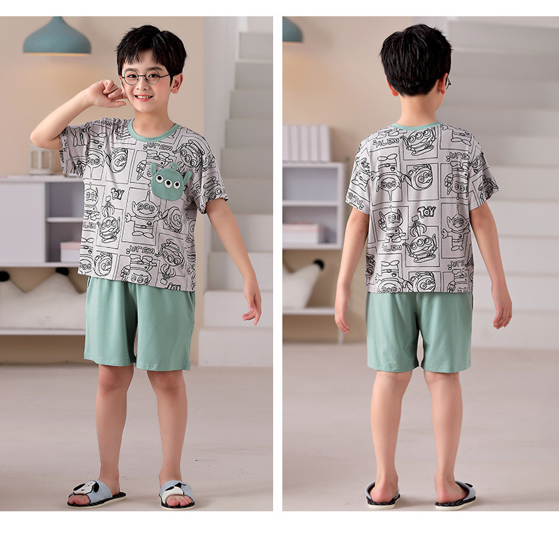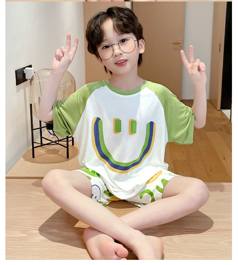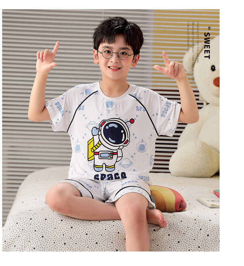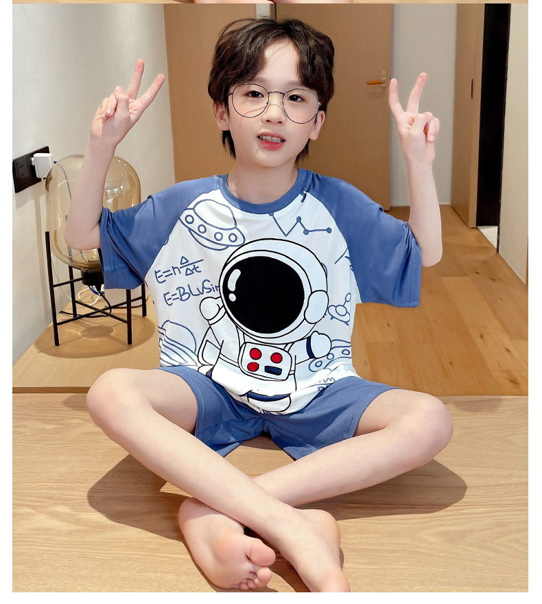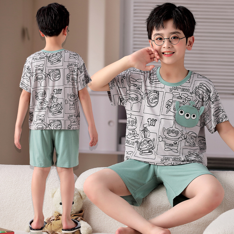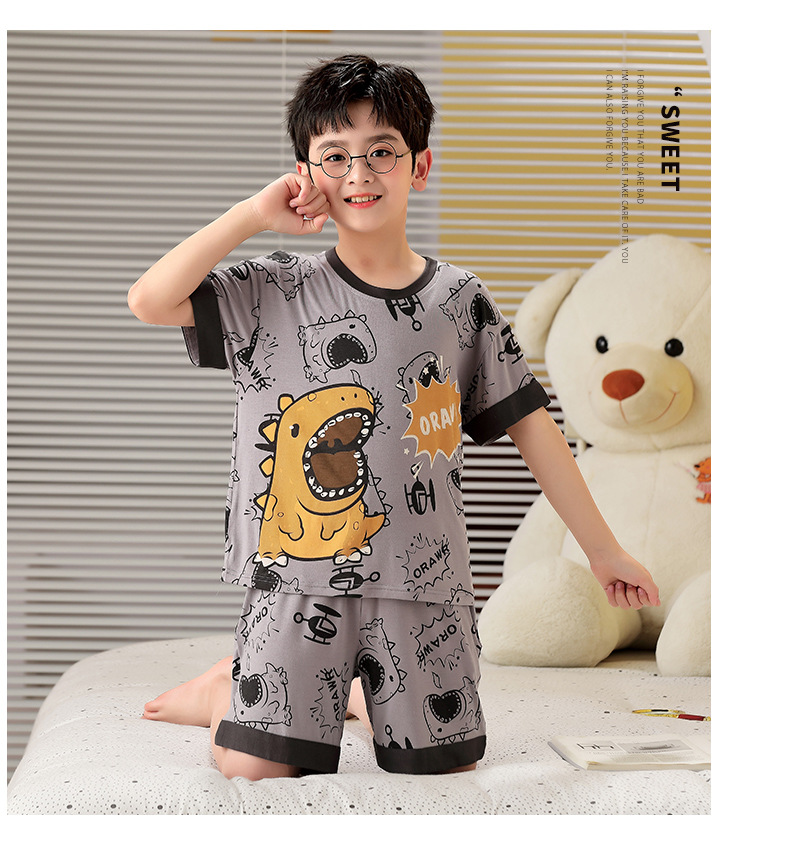 2025 뉴 보이즈 잠옷 어린이 여름 초박형 반팔 모달 소년 중 · 대형 아동용 홈 의류 세트스토어 가기