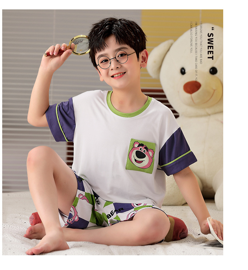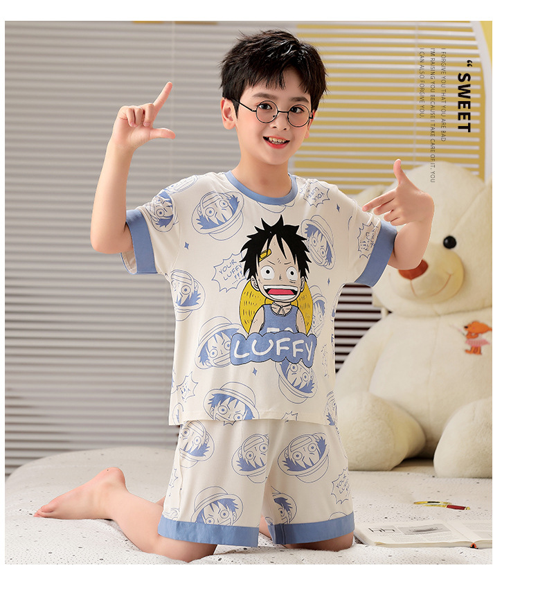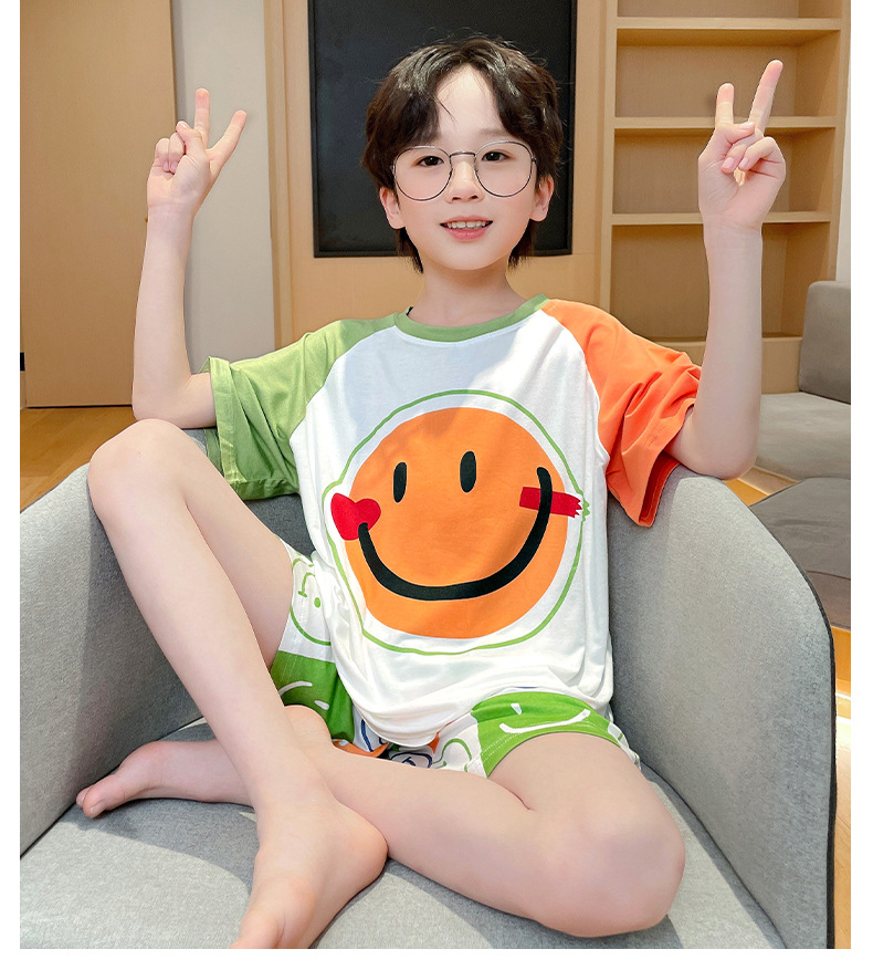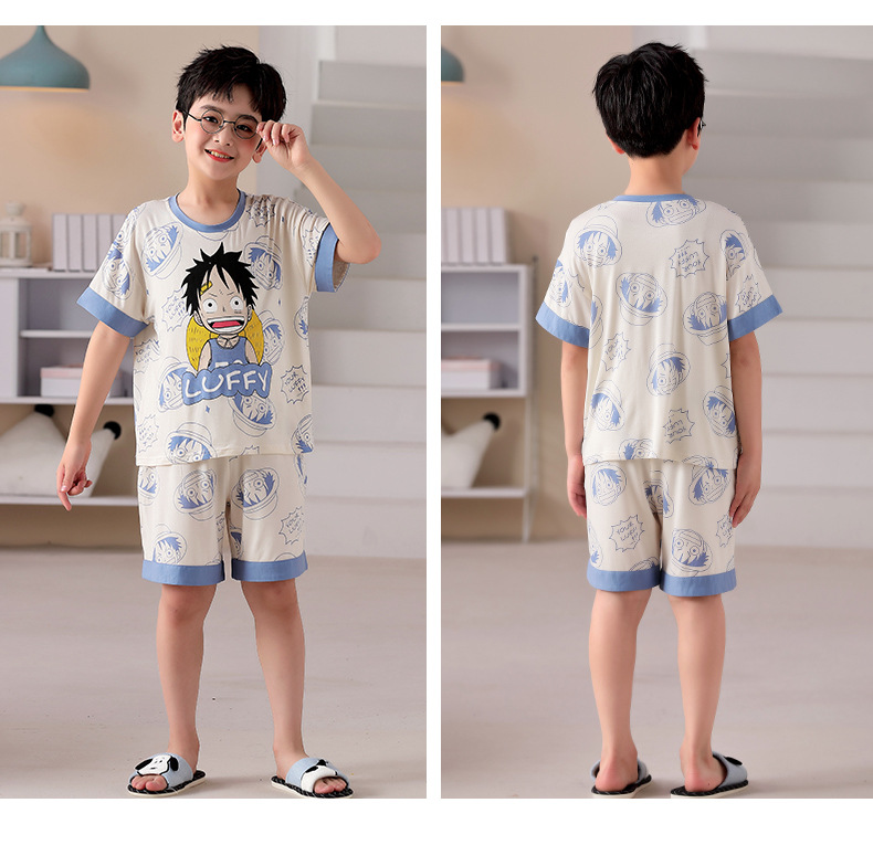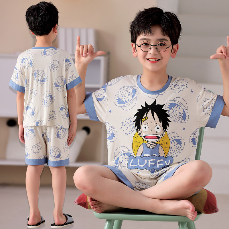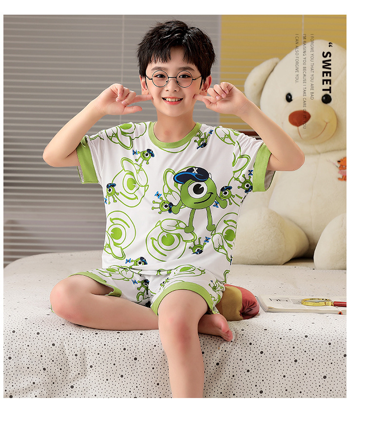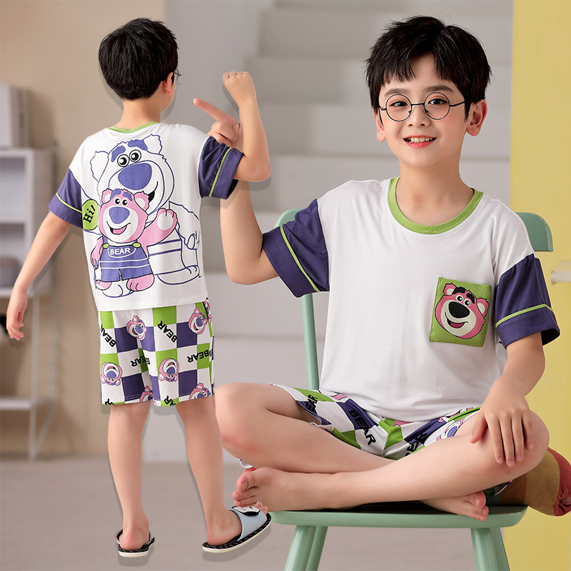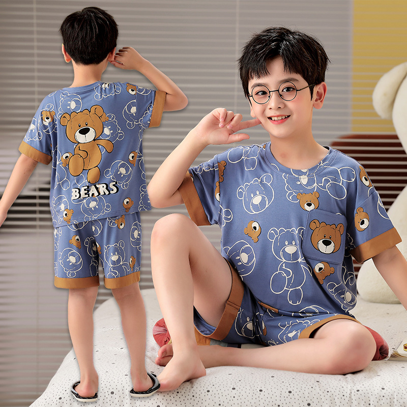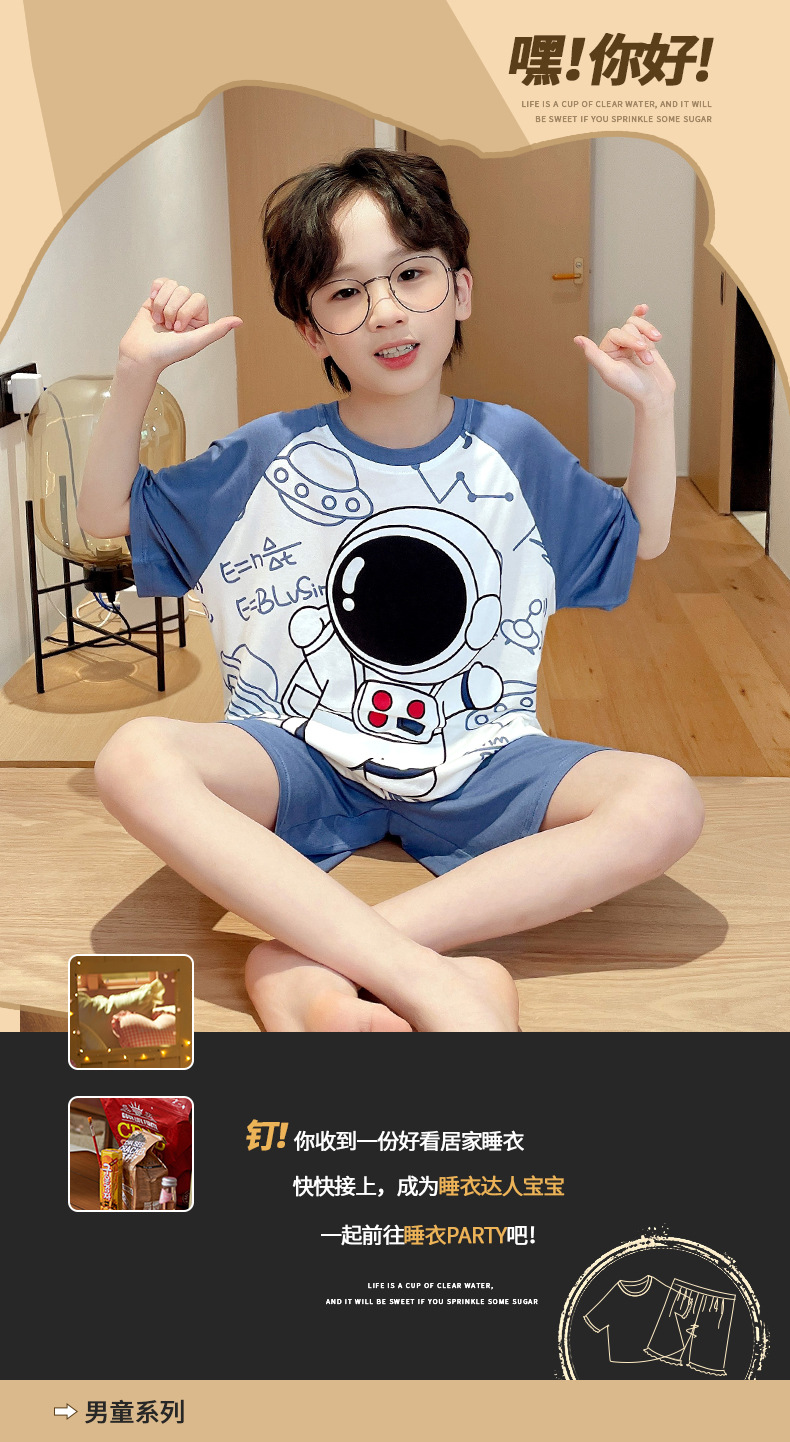 2025 뉴 보이즈 잠옷 어린이 여름 초박형 반팔 모달 소년 중 · 대형 아동용 홈 의류 세트스토어 가기