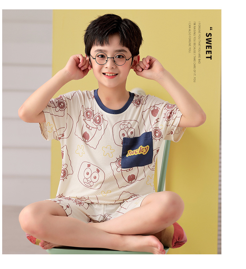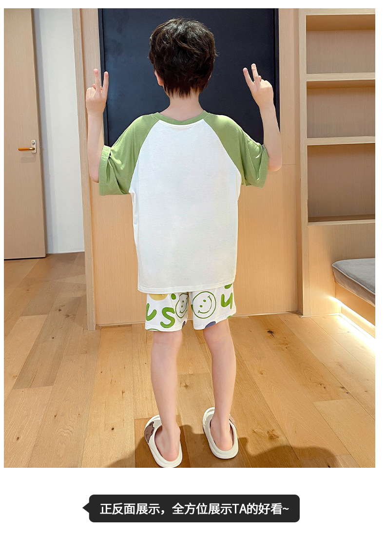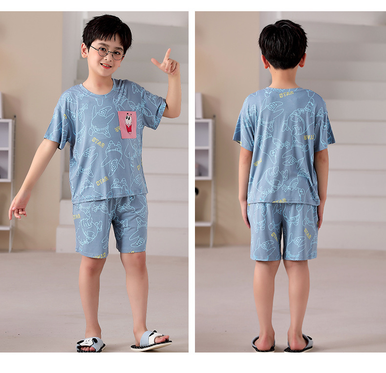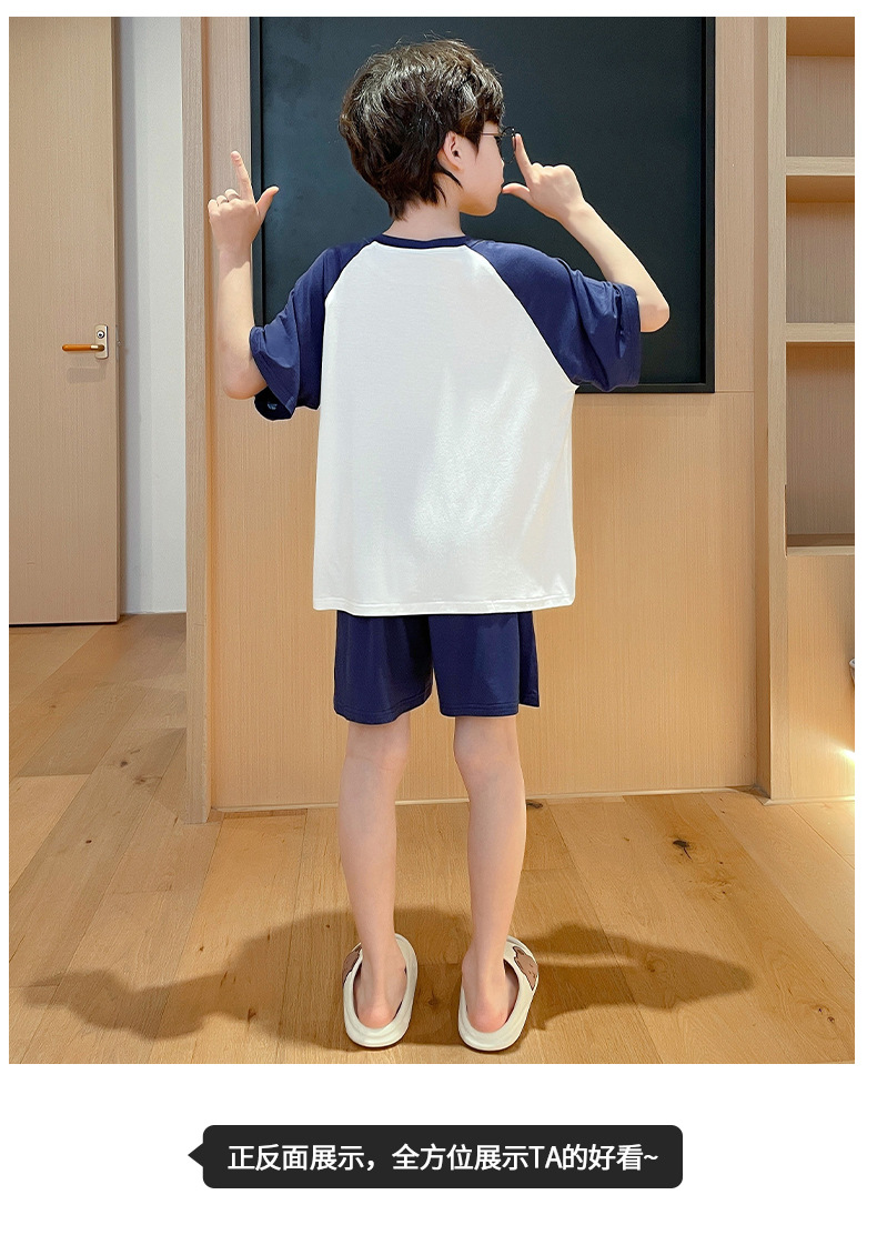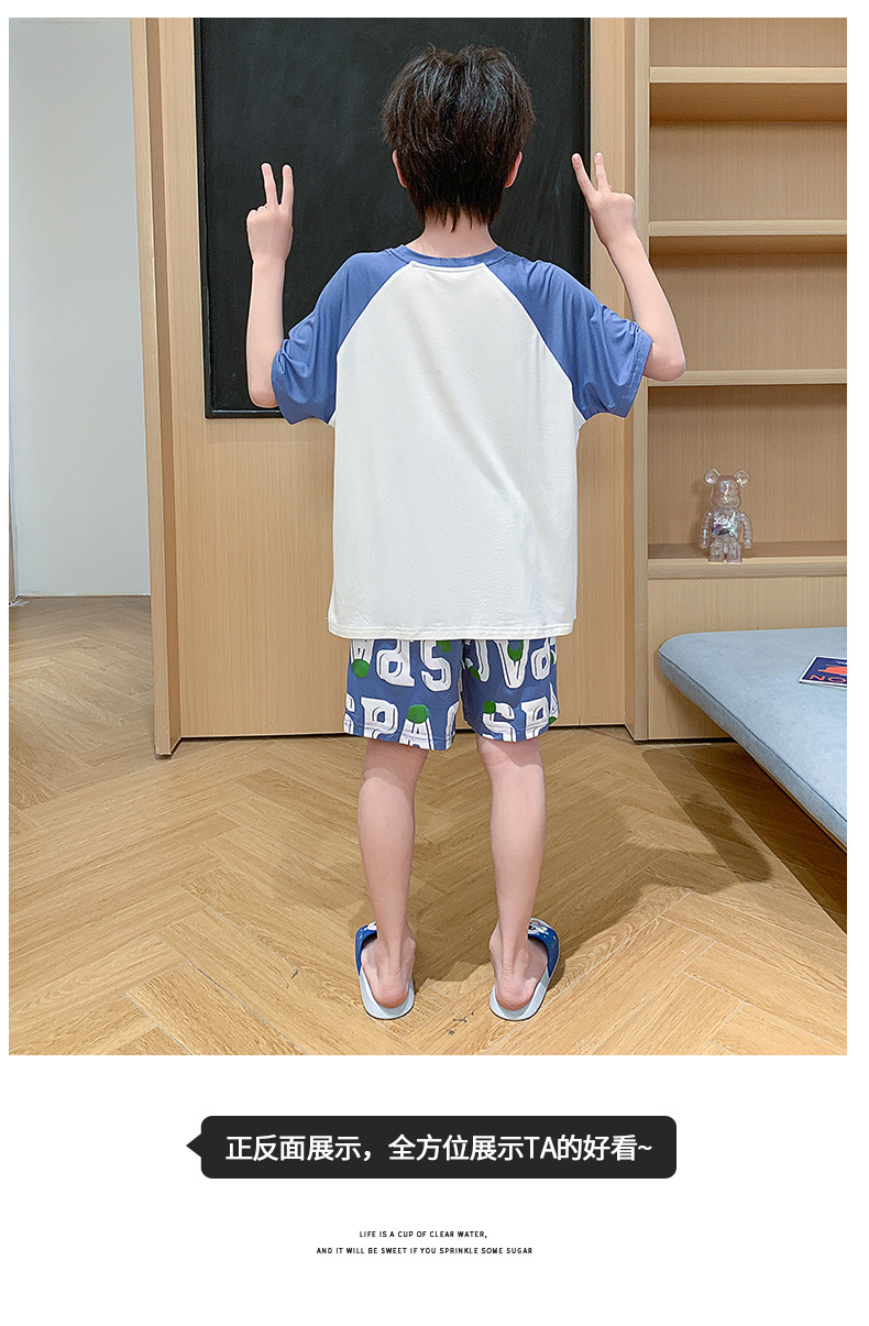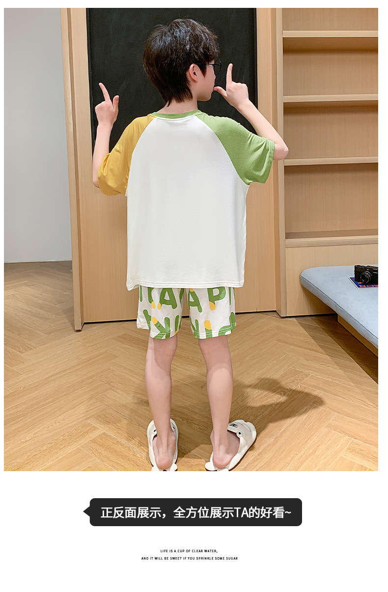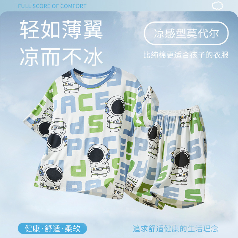 2025 뉴 보이즈 잠옷 어린이 여름 초박형 반팔 모달 소년 중 · 대형 아동용 홈 의류 세트