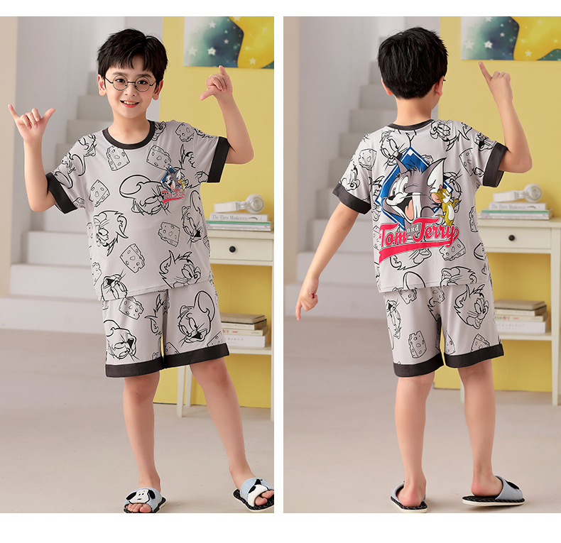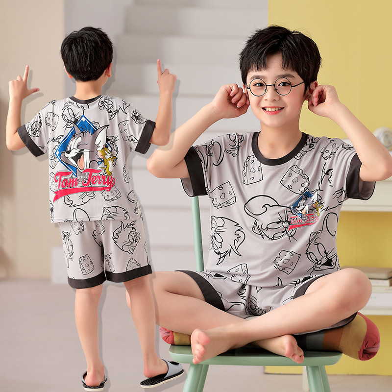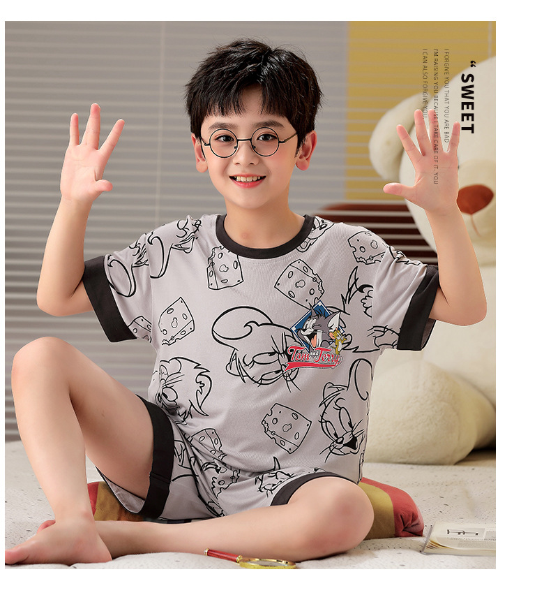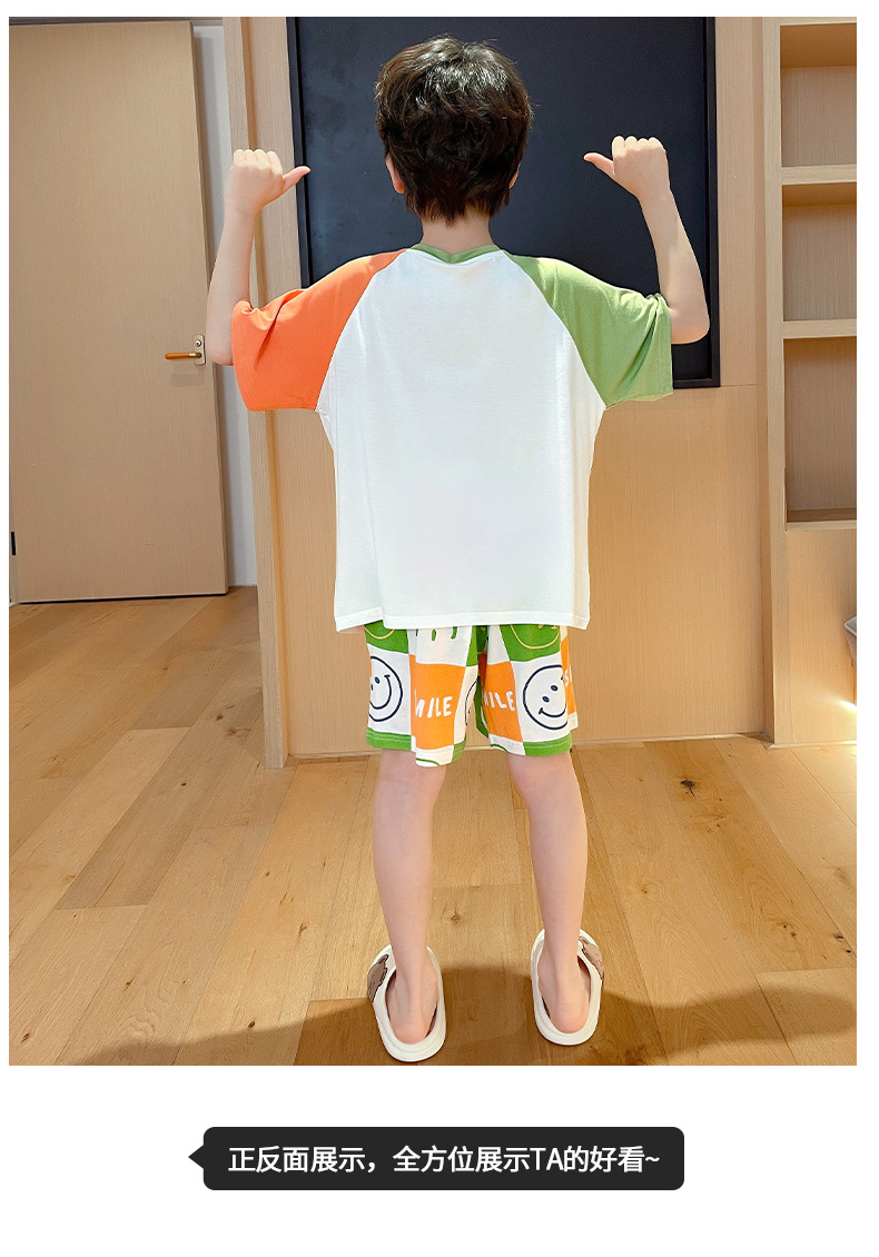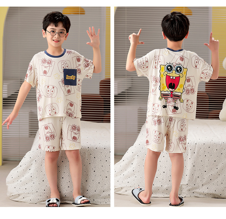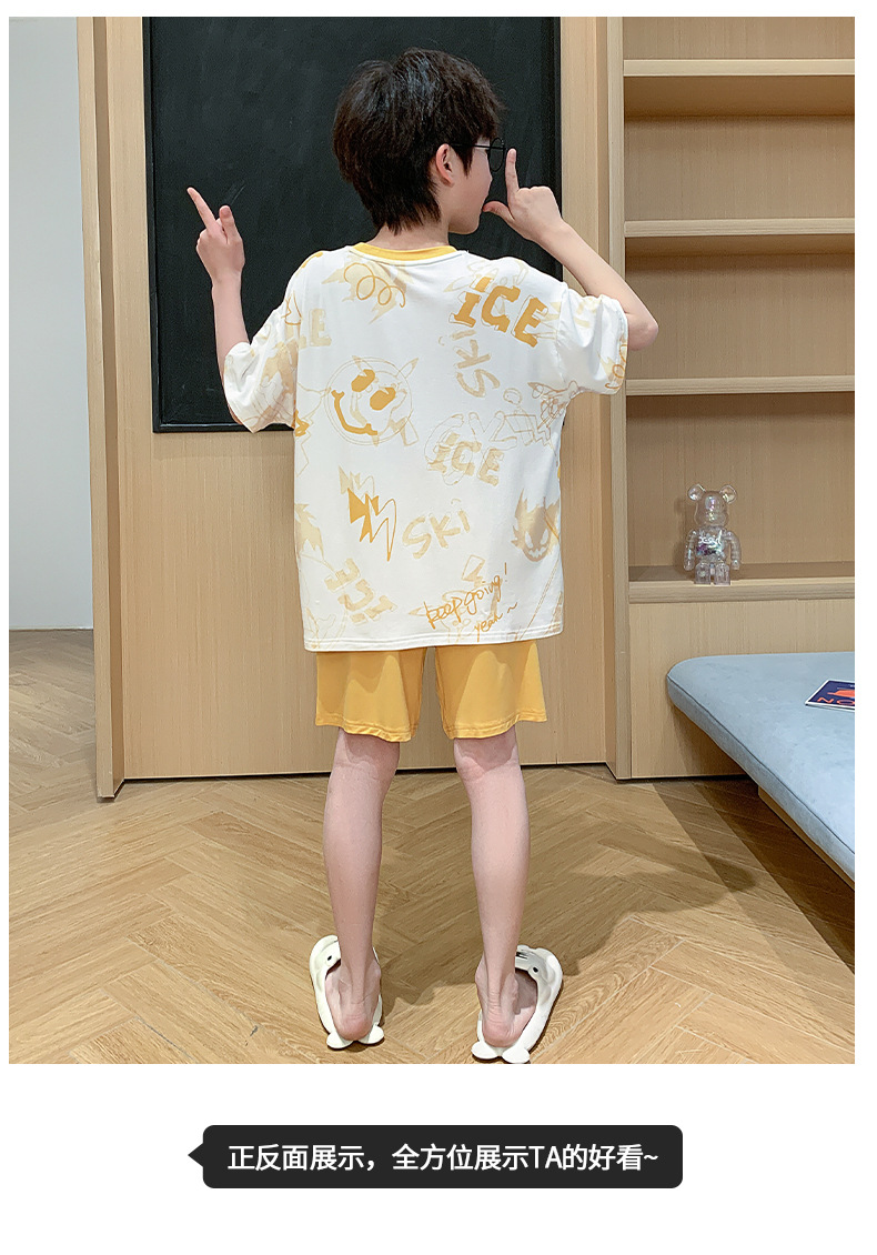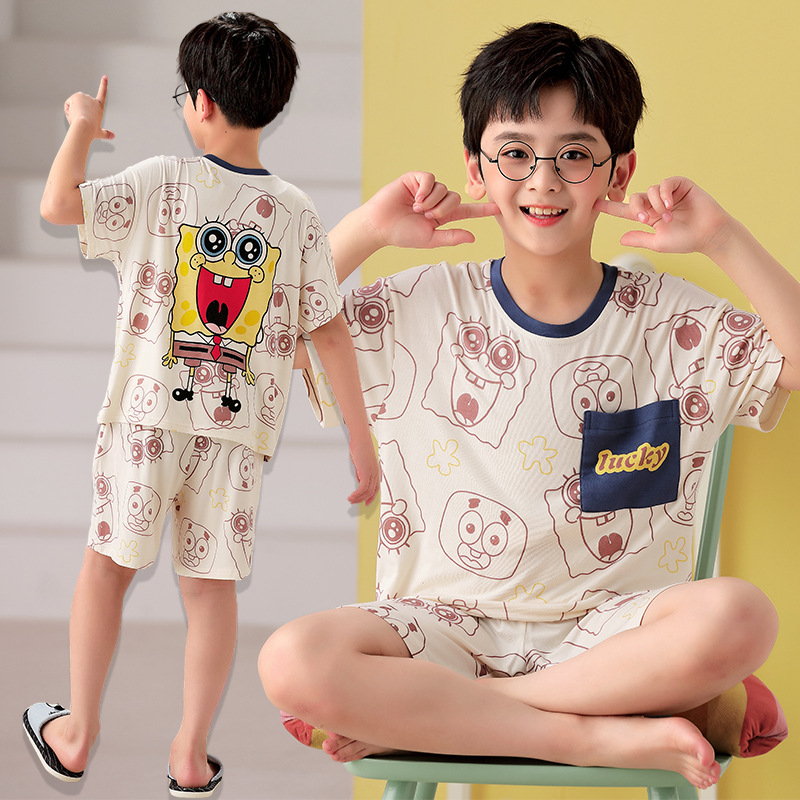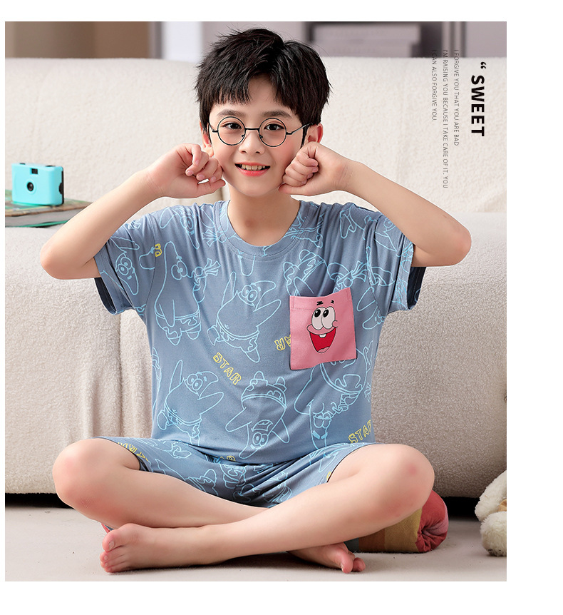 2025 뉴 보이즈 잠옷 어린이 여름 초박형 반팔 모달 소년 중 · 대형 아동용 홈 의류 세트