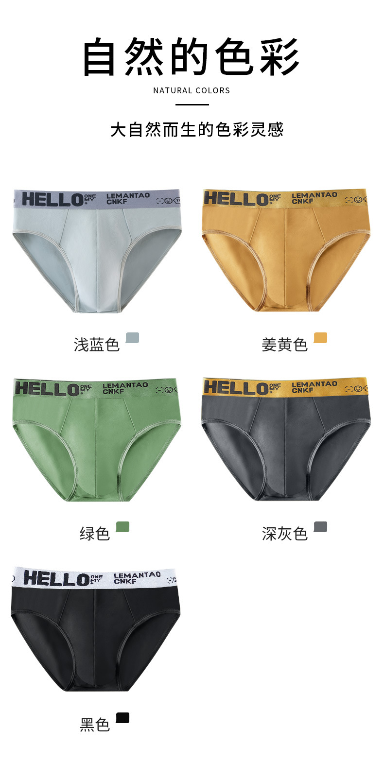 크로스 보더 박스형 HELLO 남성 속옷 우유 실크 대비 색상 소년 패션 속옷 남성 팬티 플러스 사이즈 도매스토어 가기