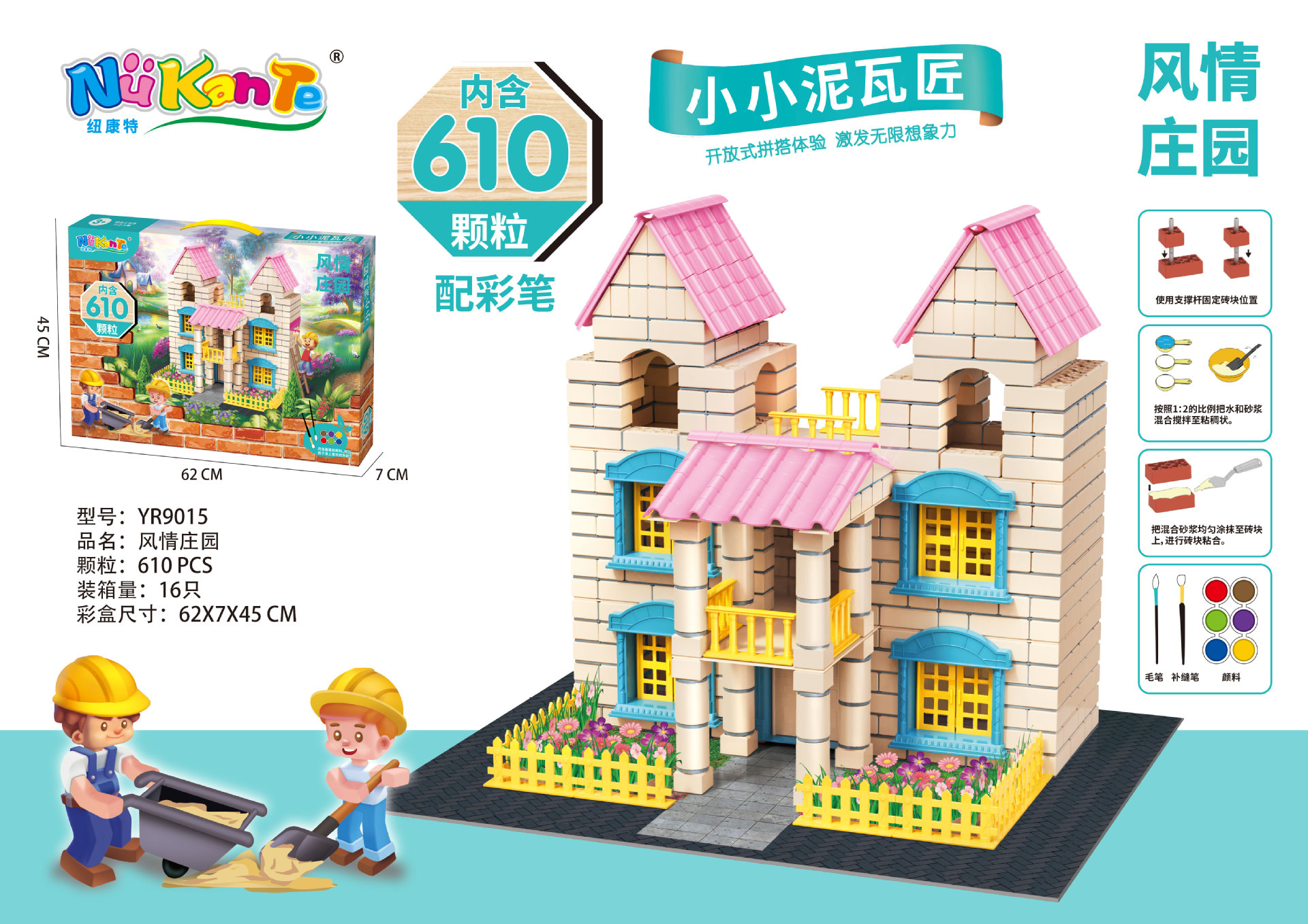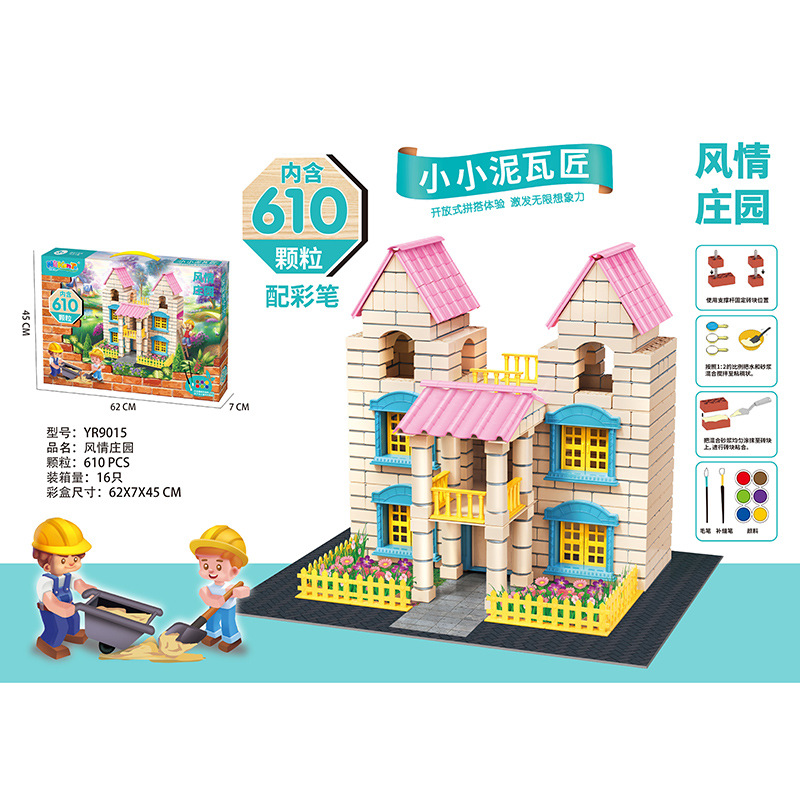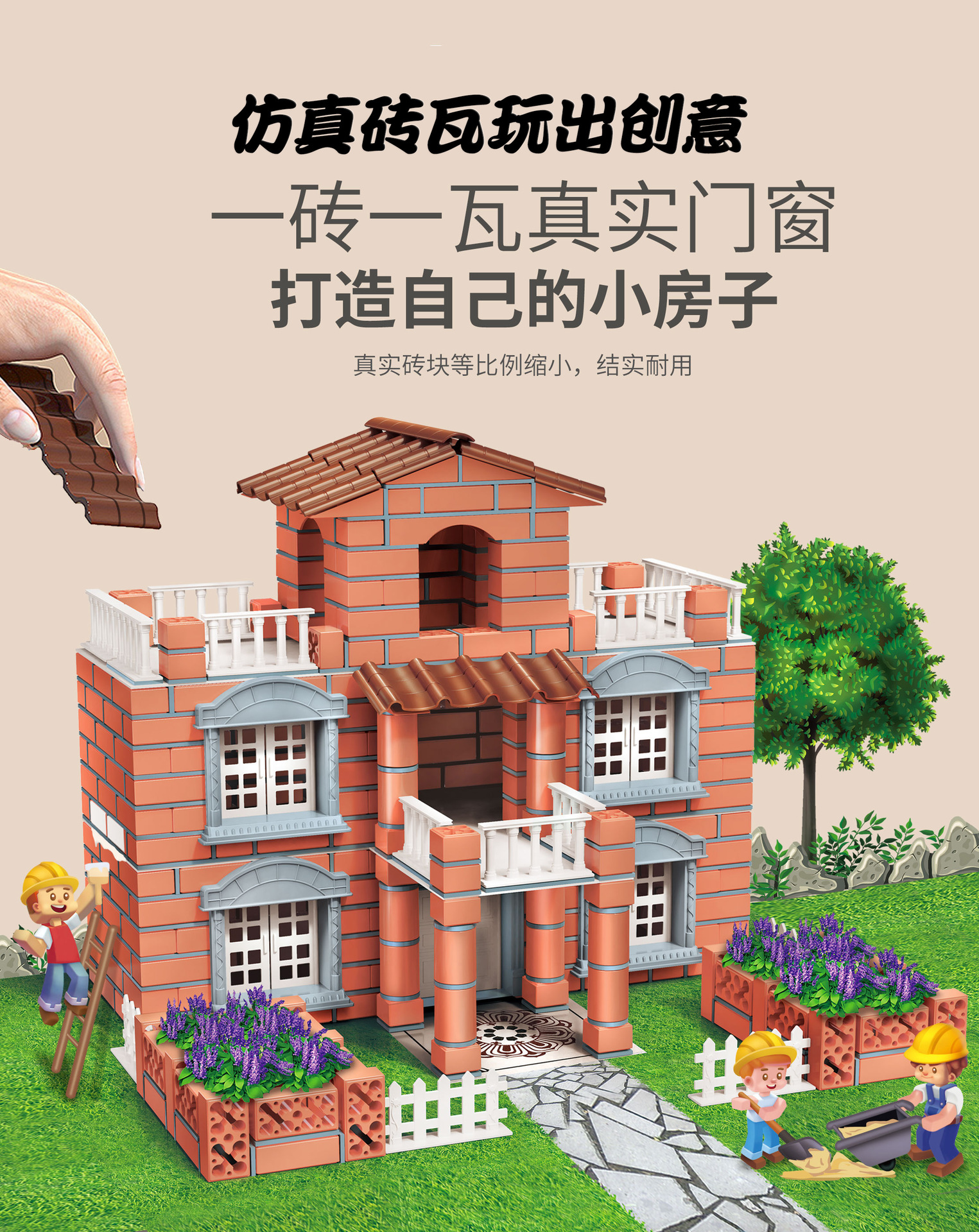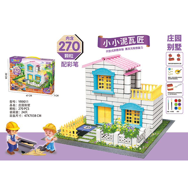 메이슨 빌딩 하우스 벽 건물 장난감 선물 어린이 건축가 수제 DIY 벽돌 오두막 미니 시멘트스토어 가기