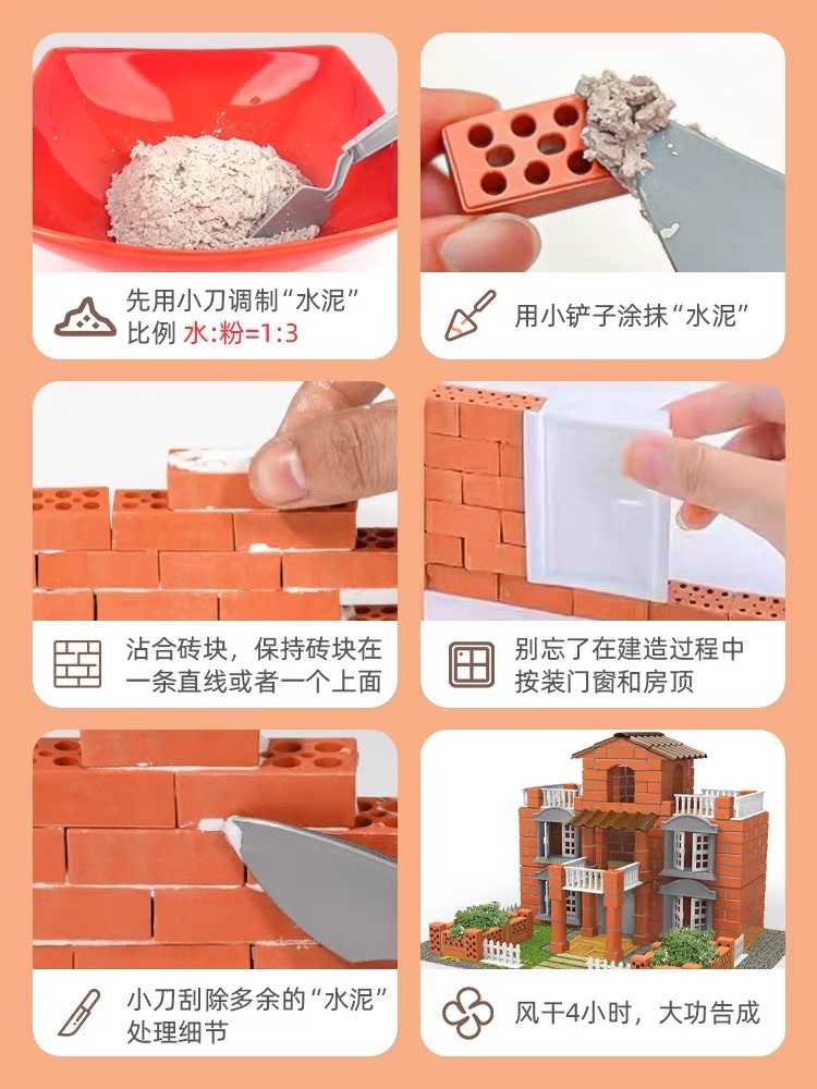 메이슨 빌딩 하우스 벽 건물 장난감 선물 어린이 건축가 수제 DIY 벽돌 오두막 미니 시멘트