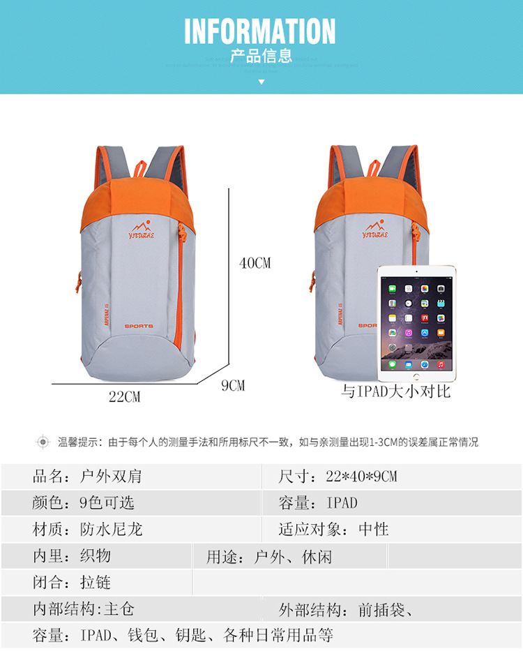 야외 스포츠 배낭 대용량 방수 가방 남여 공용 아동 캐주얼 소형 책가방 경량 여행 가방스토어 가기