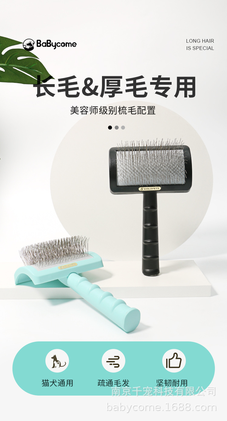 개 빗 골든 리트리버 국경 목가적 인 사모 알래스카 개 머리 대형 개 애완 동물 특별 당기기 곡선 긴 바늘 빗스토어 가기