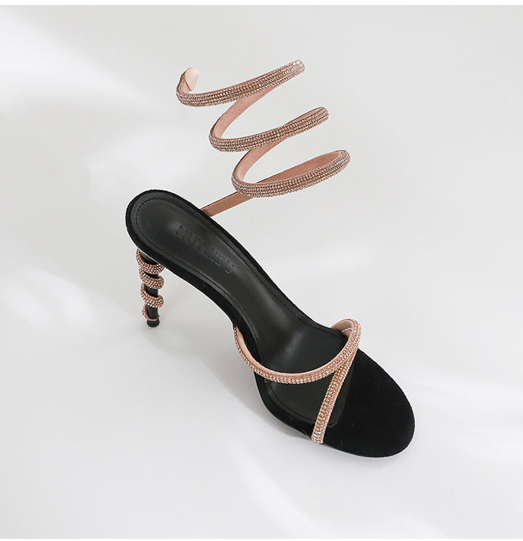 재고 L-222 새로운 2025 요정 스타일 여름 오픈 발가락 뱀 링 발 스타일 하이힐 샌들스토어 가기