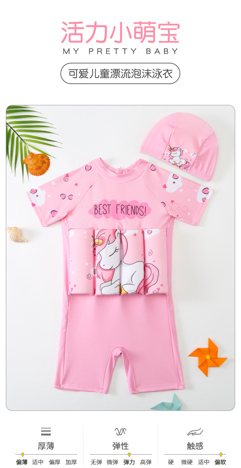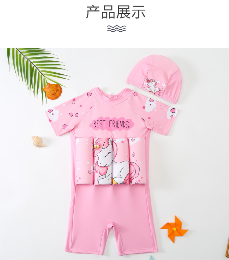 반팔 원피스 수영복 어린이 부력 수영복 어린이 아기 수영 세트 소녀 아기 수영복 세대