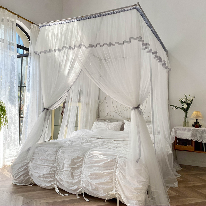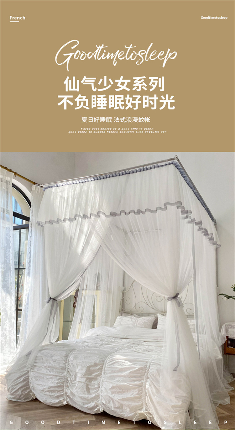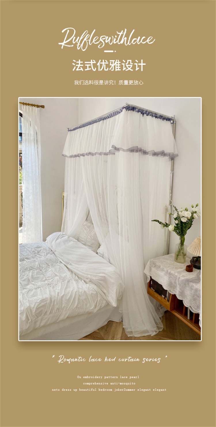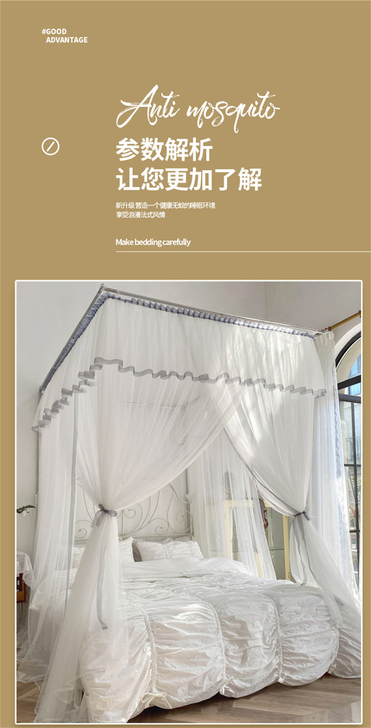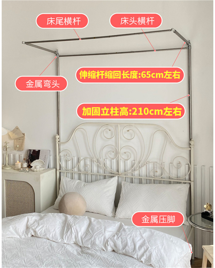 개폐식 모기장 흰색 일본식 침대 커튼 홈스테이 인 작은 신선한 스타일 그늘 맨틀 바닥 스탠딩 스테인레스 스틸 가정용 2m 가이드 레일스토어 가기