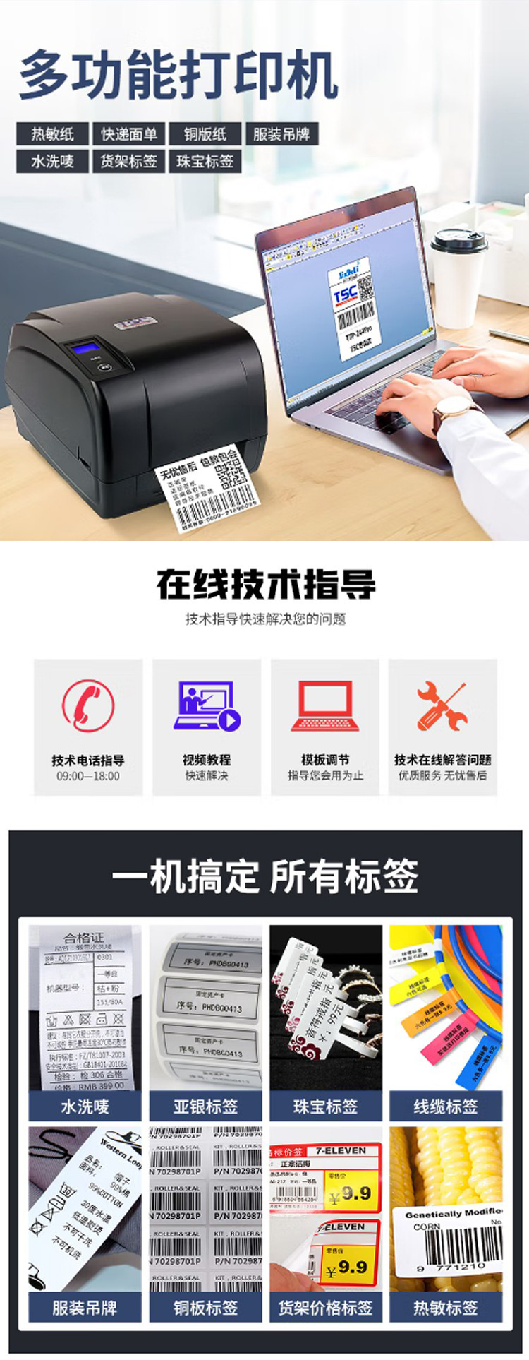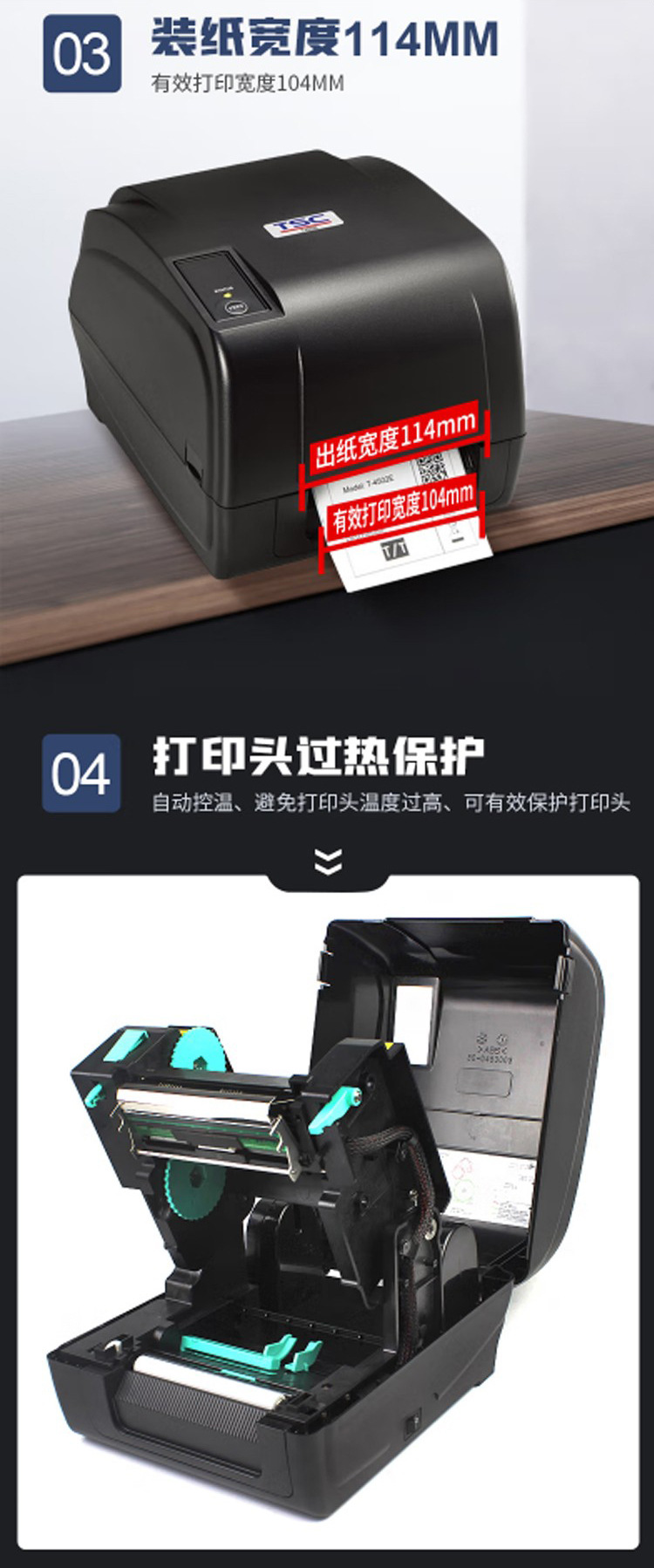 TSC T-4502/4503E 바코드 프린터 자체 접착 열 라벨 프린터 의류 태그 물 세척 마크스토어 가기