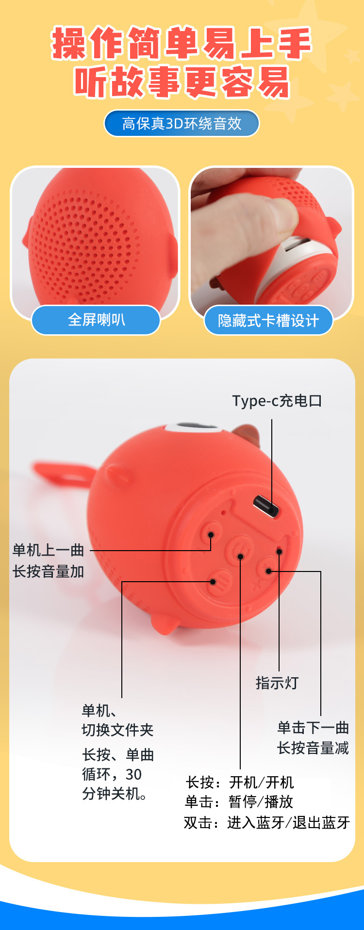 어린이 조기 교육 이야기 기계 블루투스 스피커 아기 노래 플레이어 휴대용 낙하 방지 음악 듣기 아기 계발