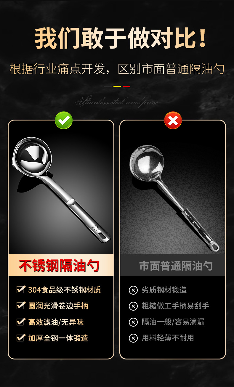 304 스테인레스 스틸 오일 분리 스푼 가정용 주방 오일 스프 분리 오일 필터 스푼 오일 스키밍 소쿠리 전골 스푼스토어 가기