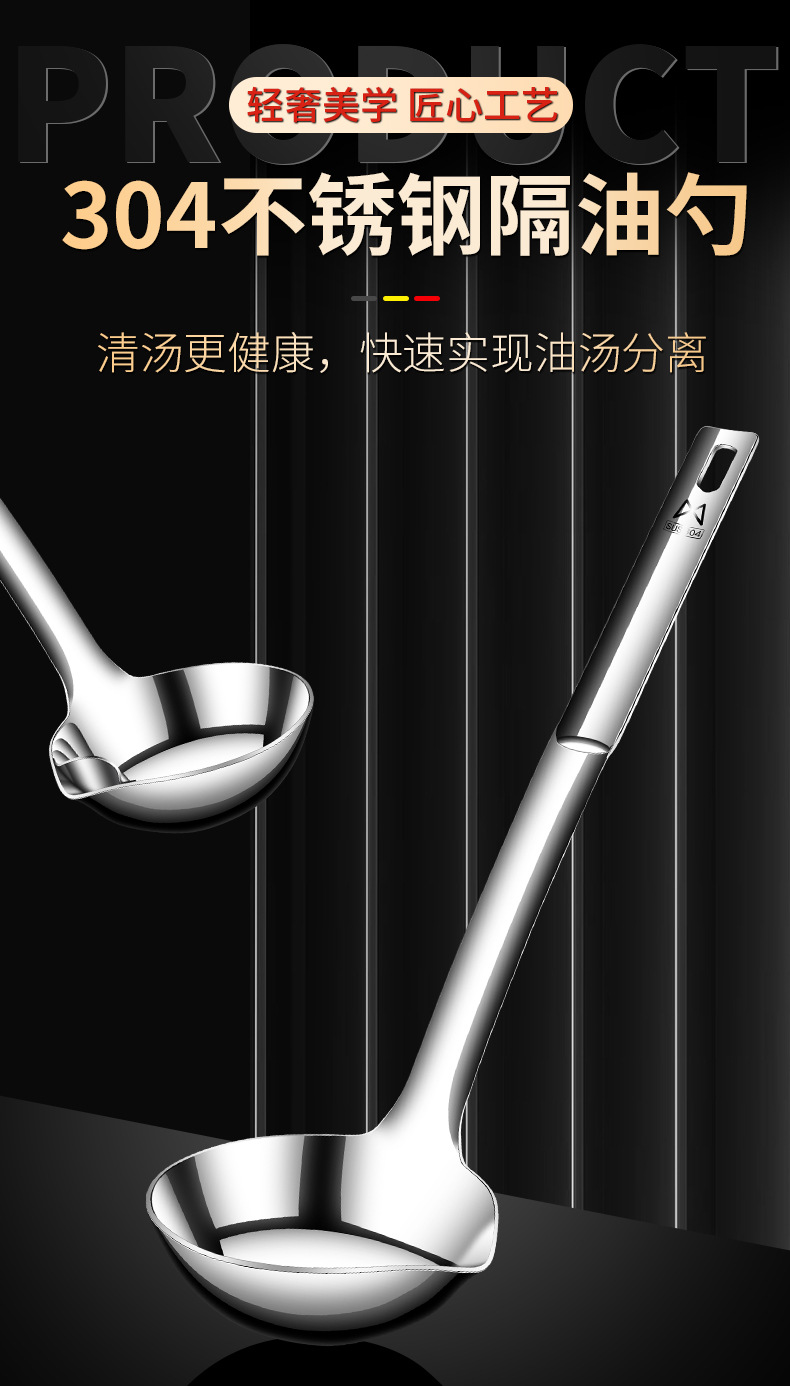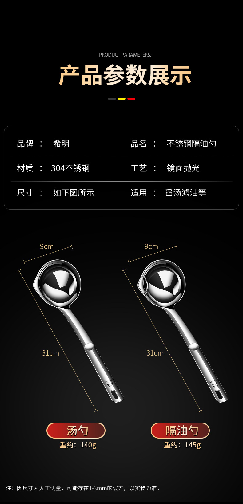 304 스테인레스 스틸 오일 분리 스푼 가정용 주방 오일 스프 분리 오일 필터 스푼 오일 스키밍 소쿠리 전골 스푼
