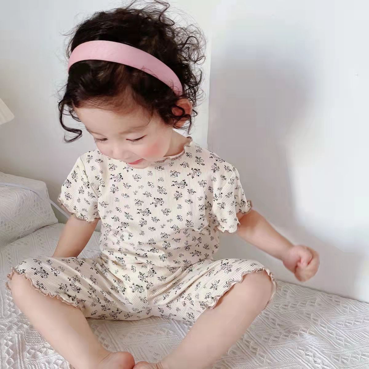 여름 아기 잠옷 얇은 세트 도트 웨스턴 스타일 여아 여름 가정복 투피스 어린이 에어컨 의류스토어 가기