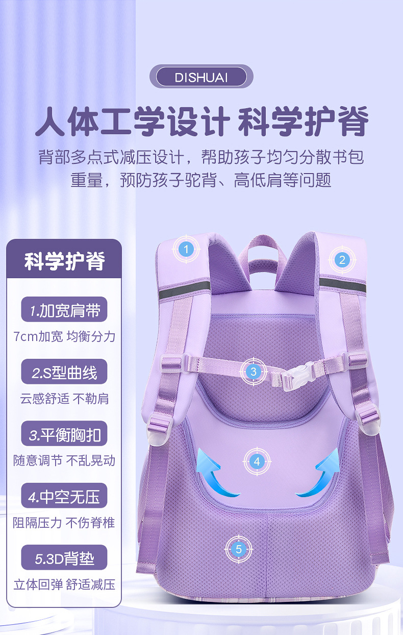 2023 신책가방 여자 초등학생 1 명, 2 명, 3-6 학년 여자 초경량 부담 경감 아동 척추 배낭