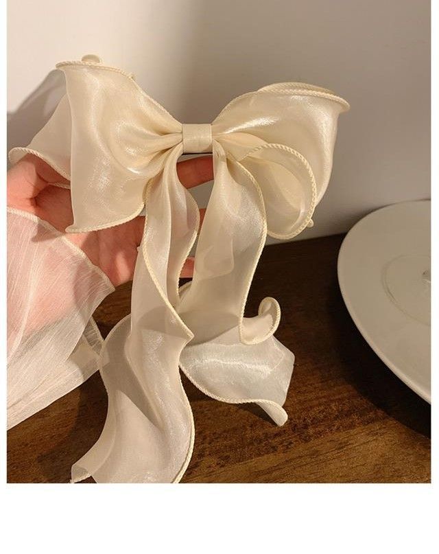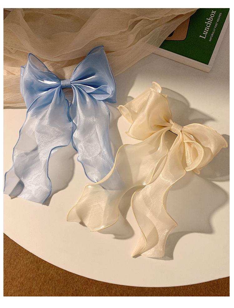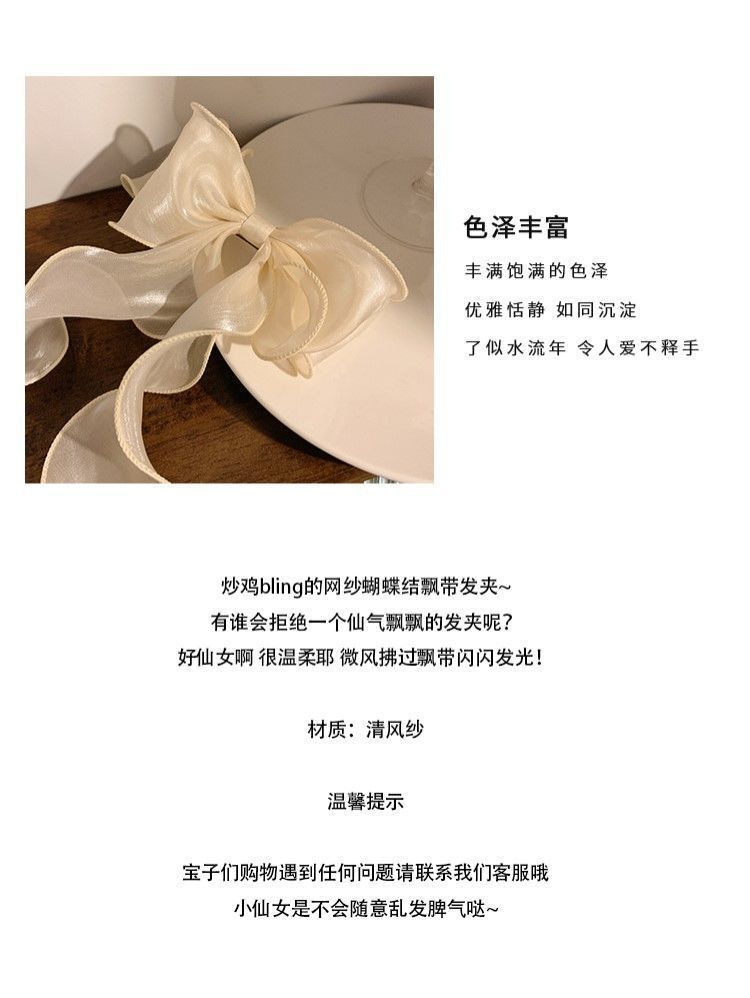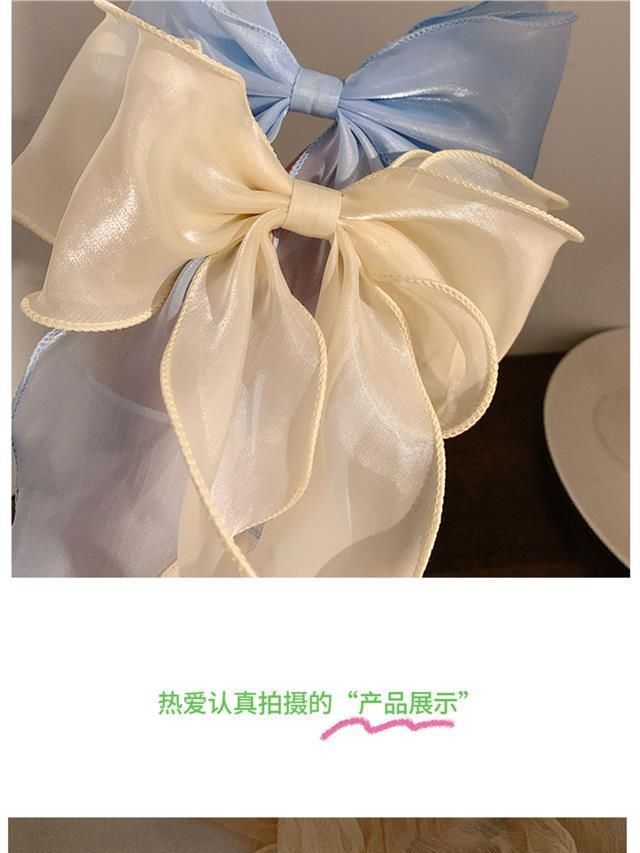 봄 슈퍼 페어리 화이트 거즈 활 리본 머리핀 여성용 머리 모자 대형 머리핀 헤어 액세서리스토어 가기
