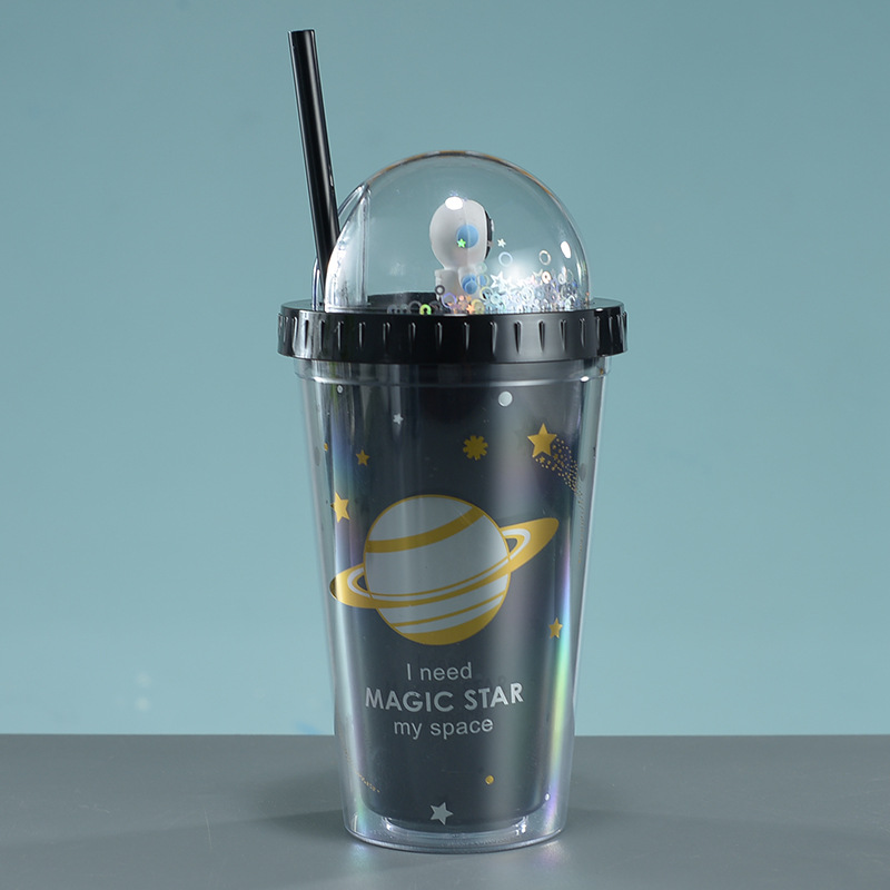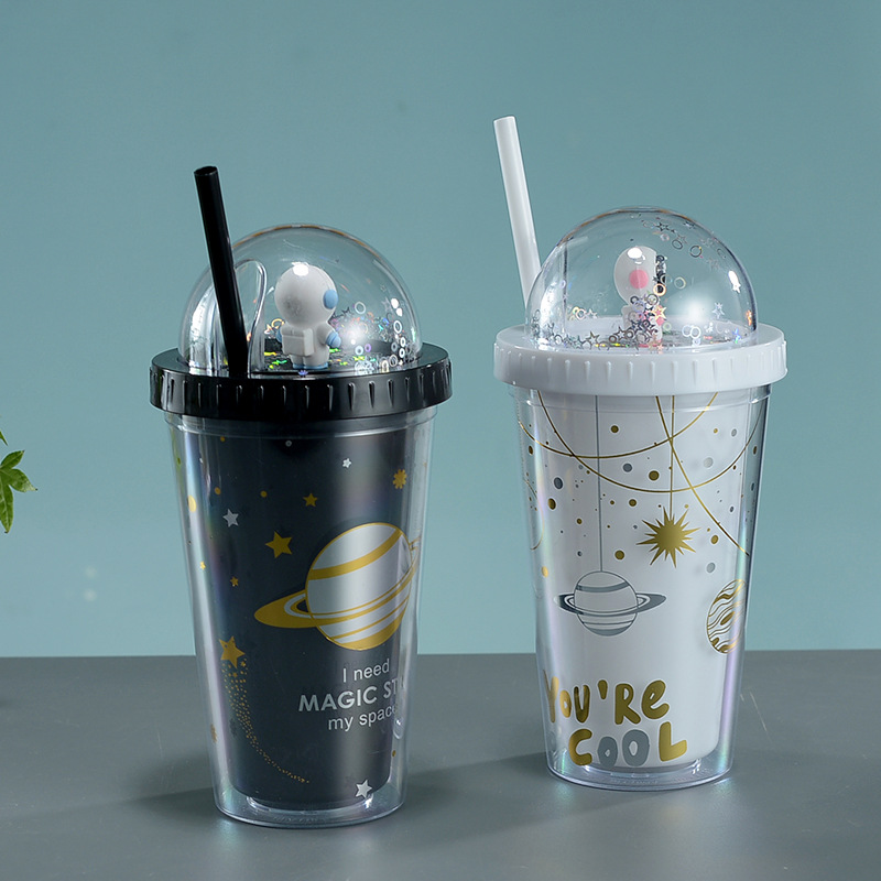 새로운 창조적 인 우주 비행사 더블 레이어 플라스틱 컵 하이 컬러 가치 행성 컵 학생 여름 아이스 컵 어린이 만화 물 컵스토어 가기