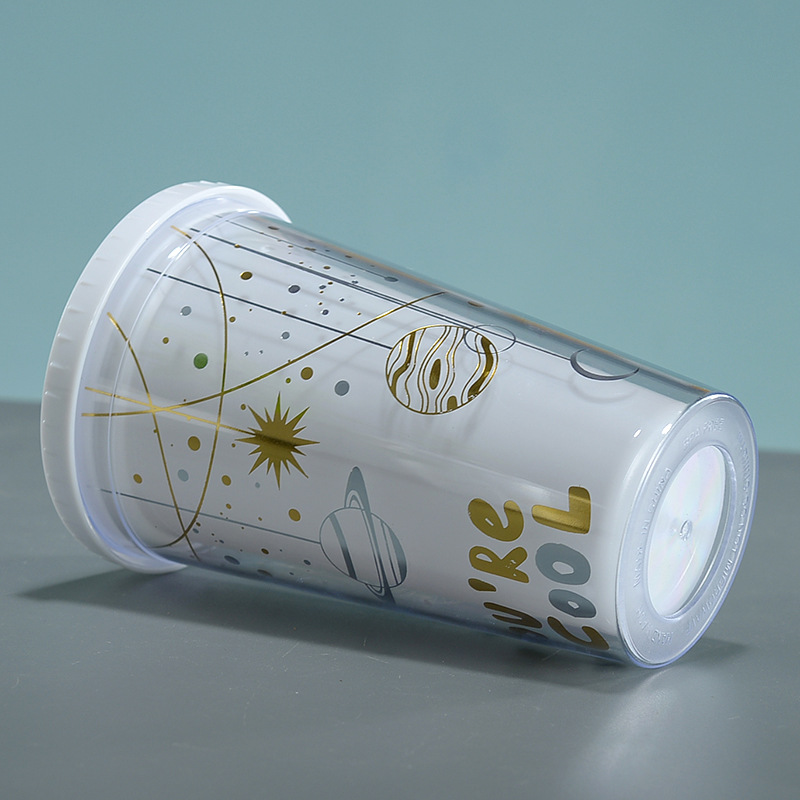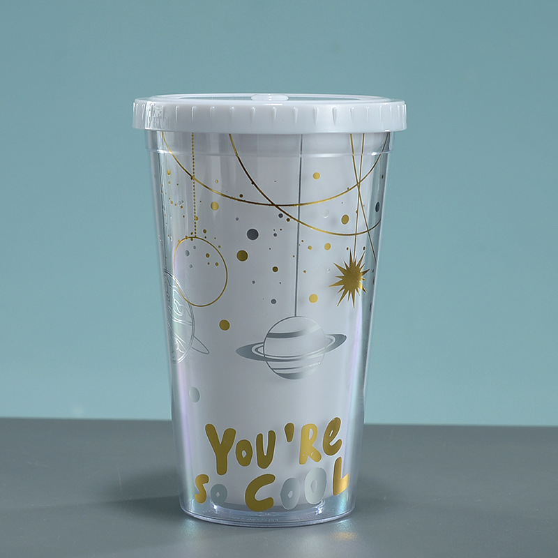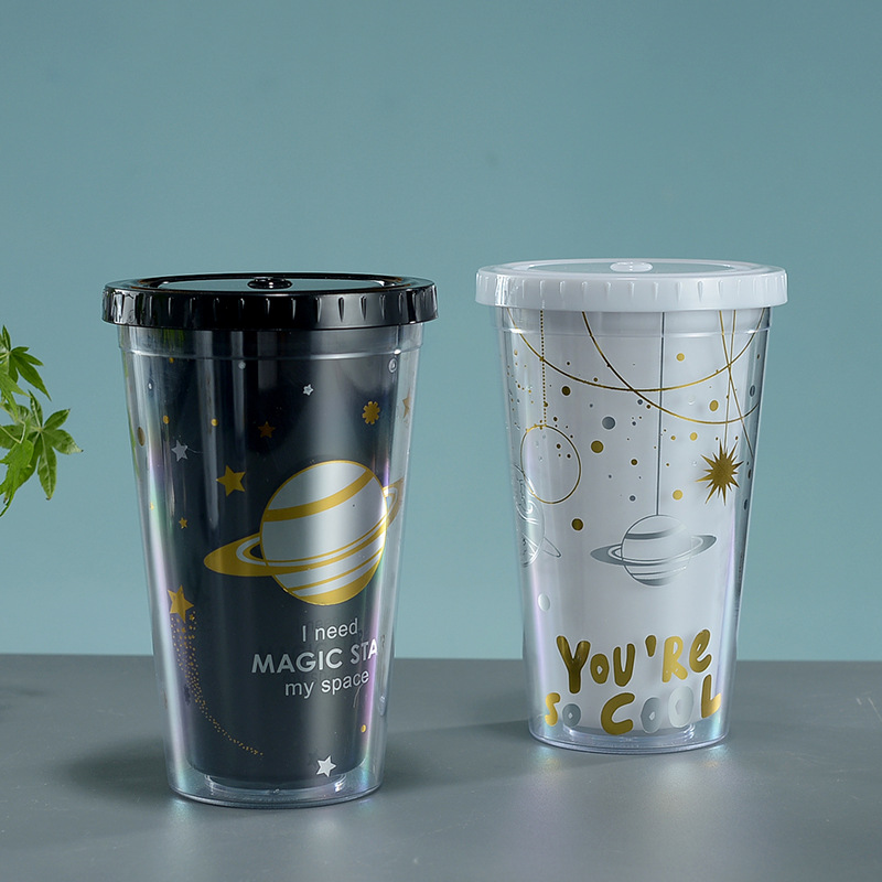 새로운 창조적 인 우주 비행사 더블 레이어 플라스틱 컵 하이 컬러 가치 행성 컵 학생 여름 아이스 컵 어린이 만화 물 컵