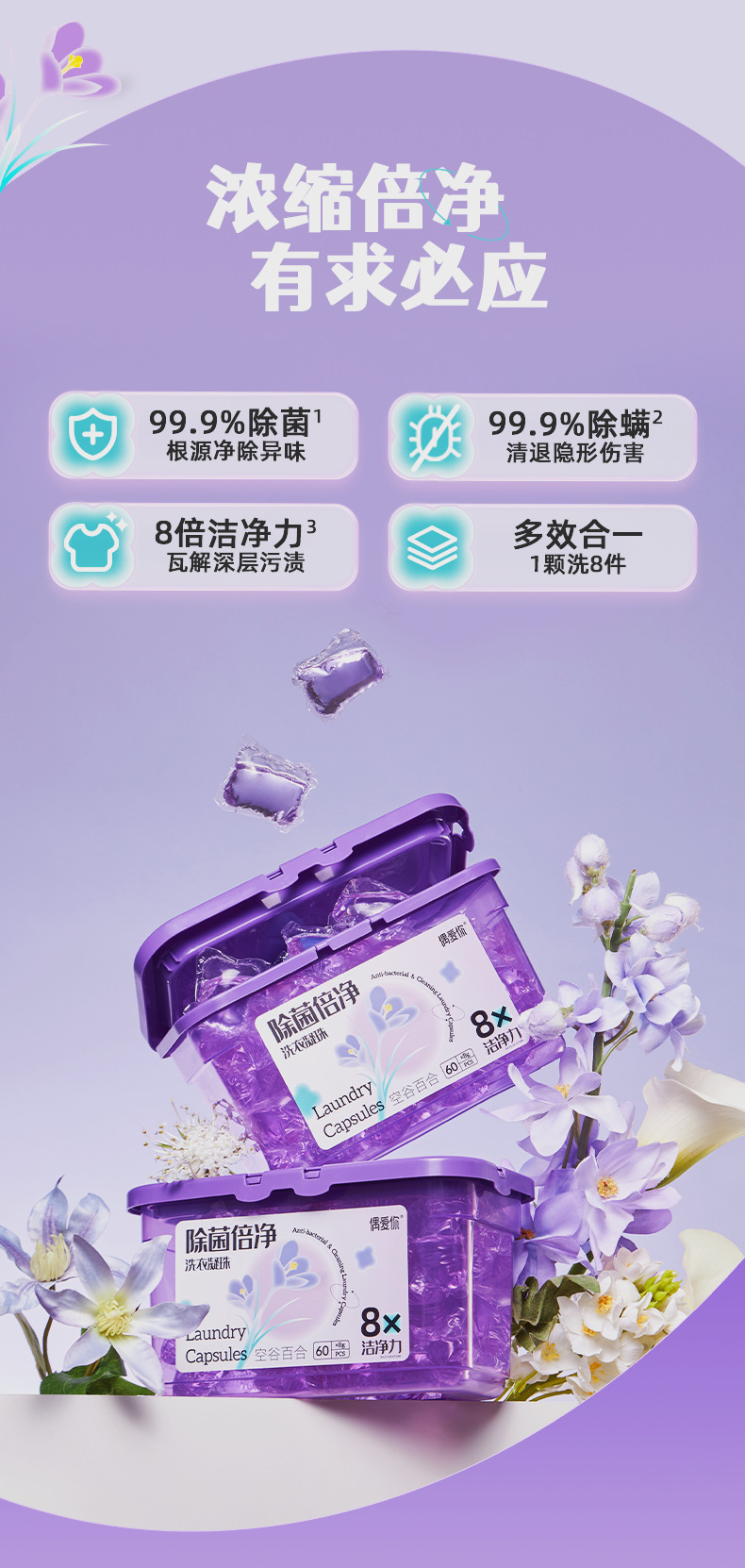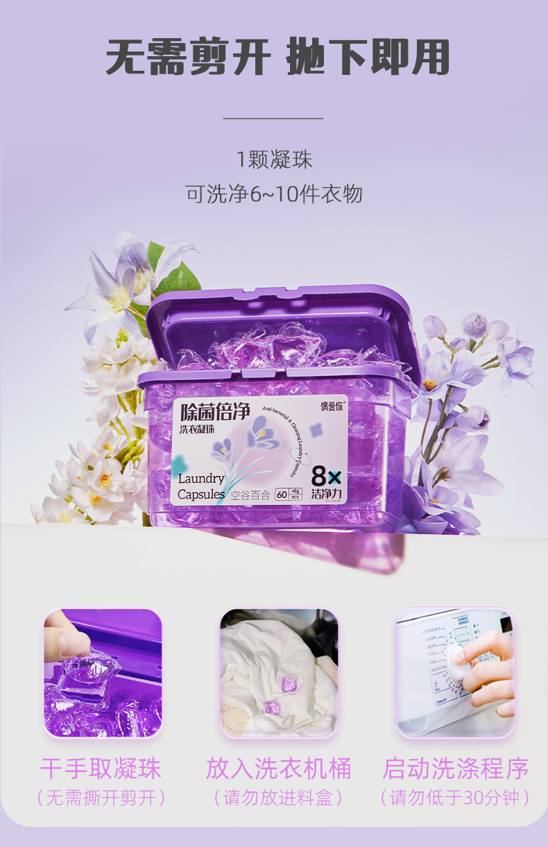 사랑해요 세탁볼 진드기 제거 항균 탈취 단일 캡슐 60개 백합향 농축 세탁세제