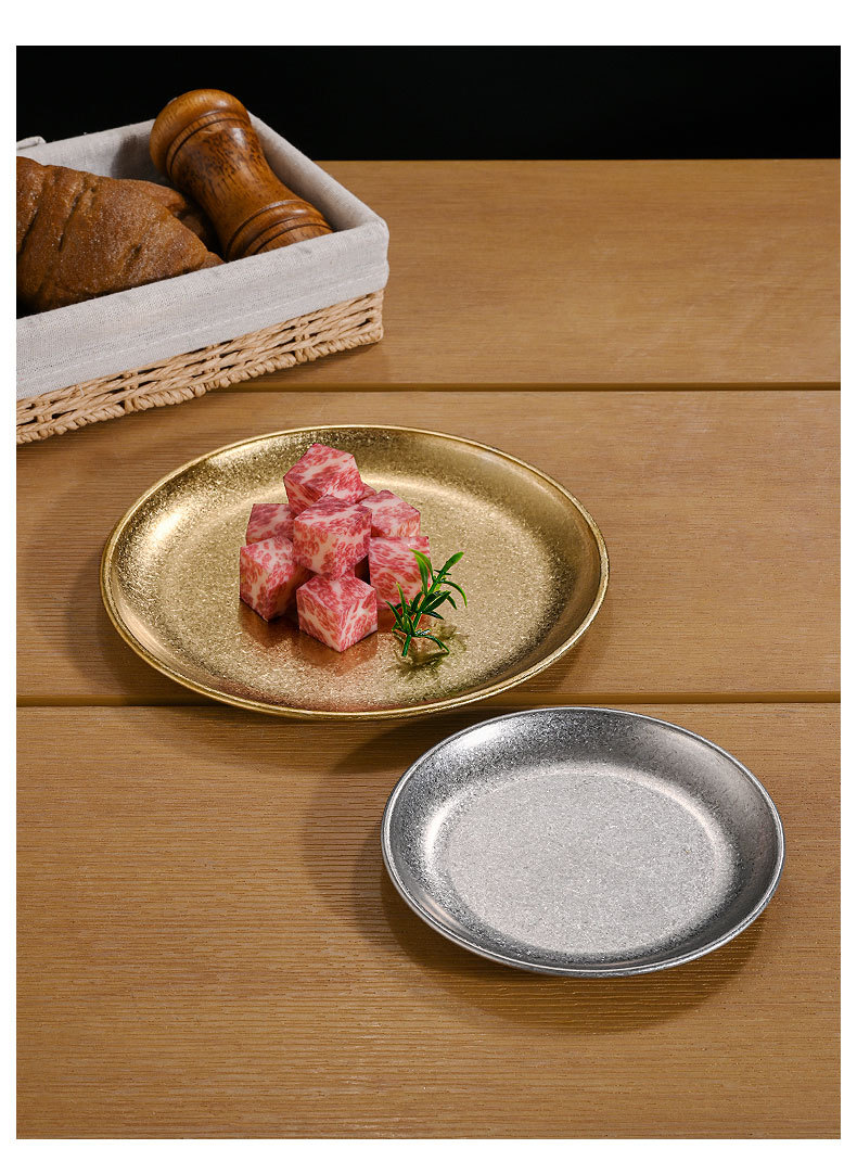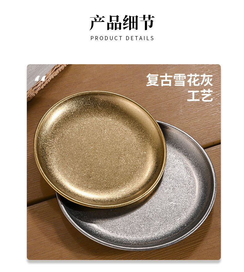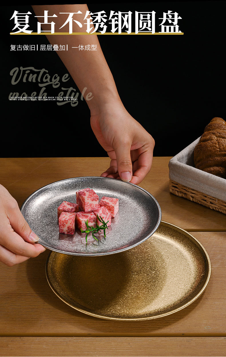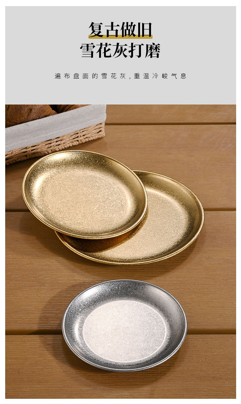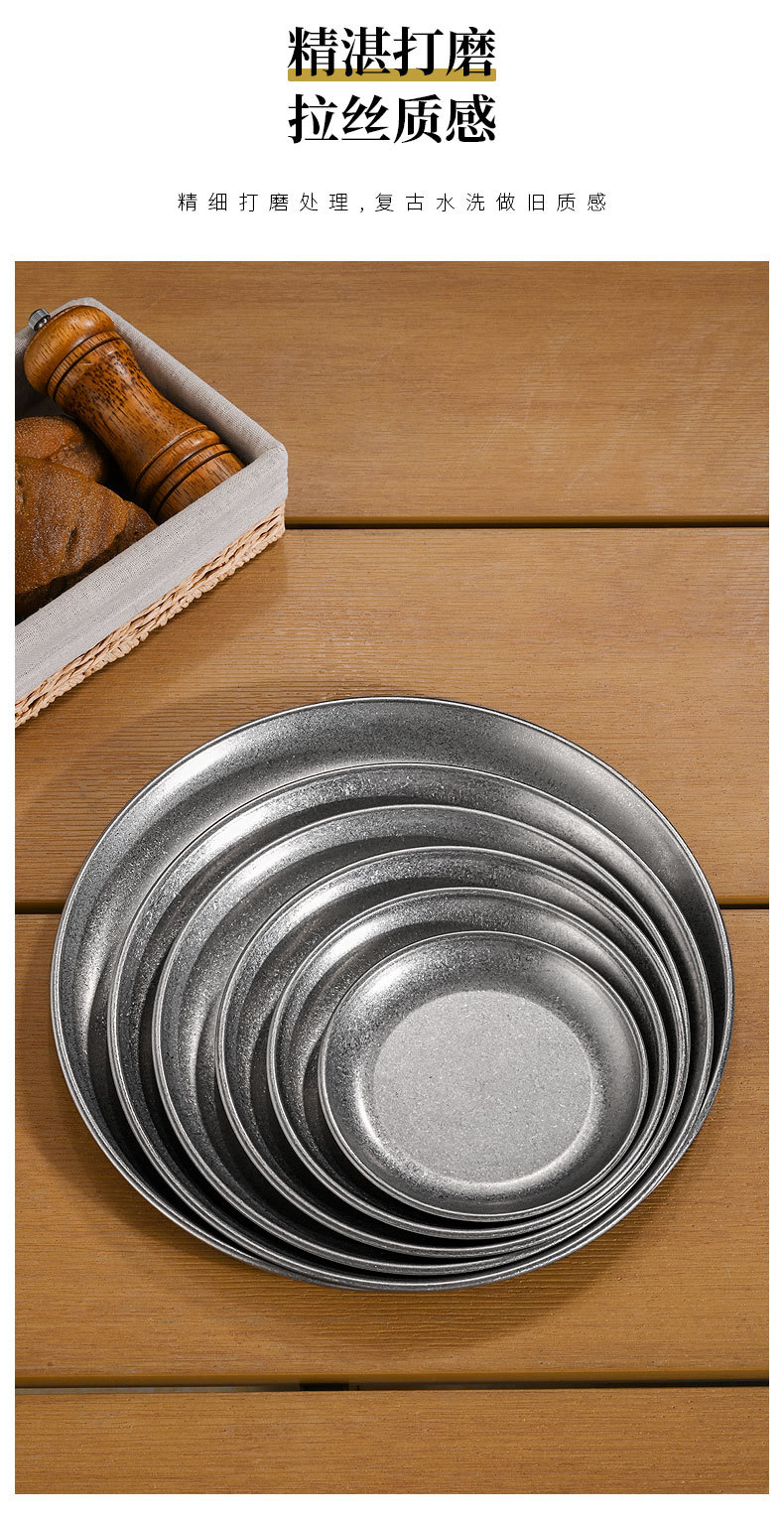 한국식 스테인레스 스틸 디스크, 오래된 커피 숍 트레이 과일 플레이트 디저트 얕은 플레이트 플랫 플레이트 빈티지 식기