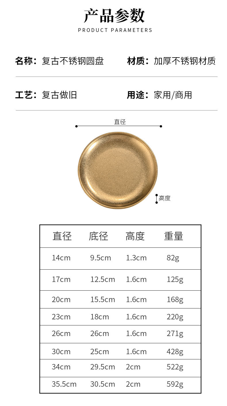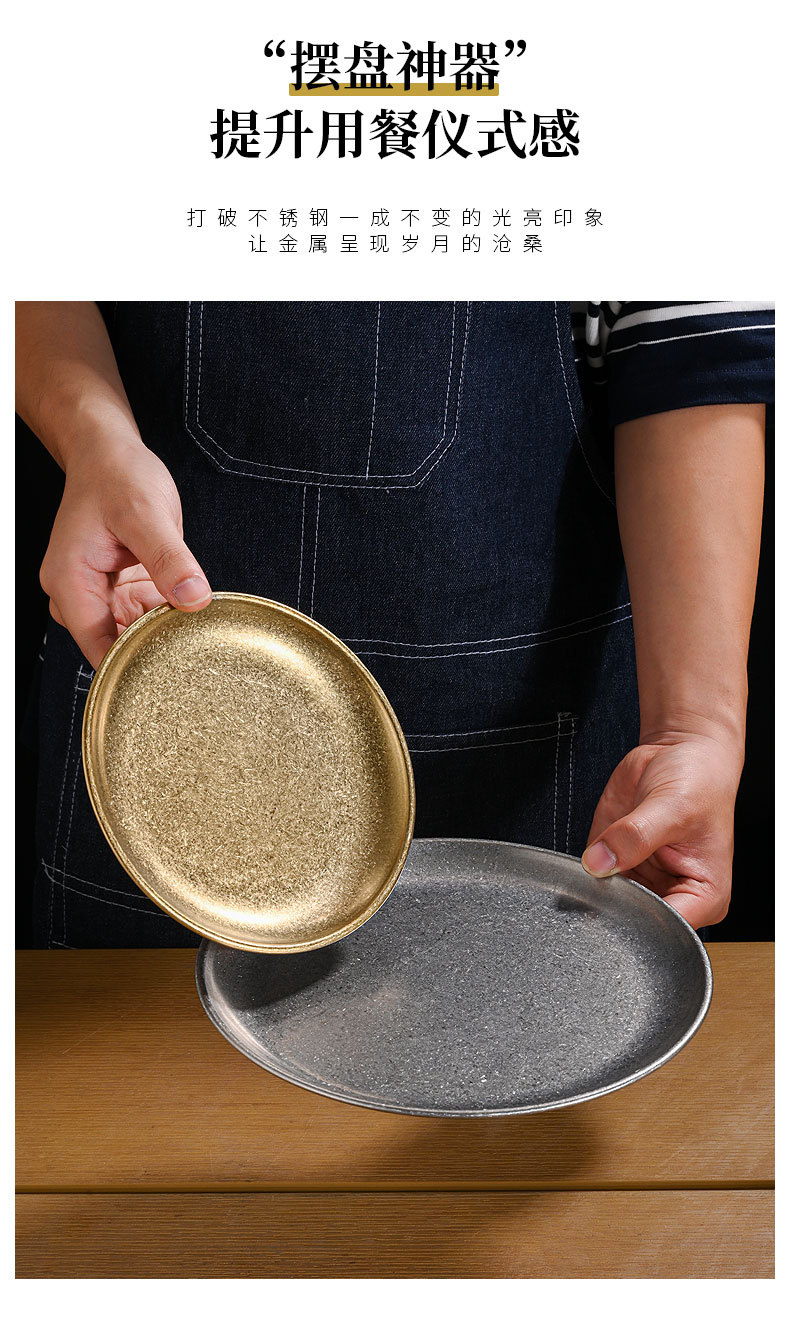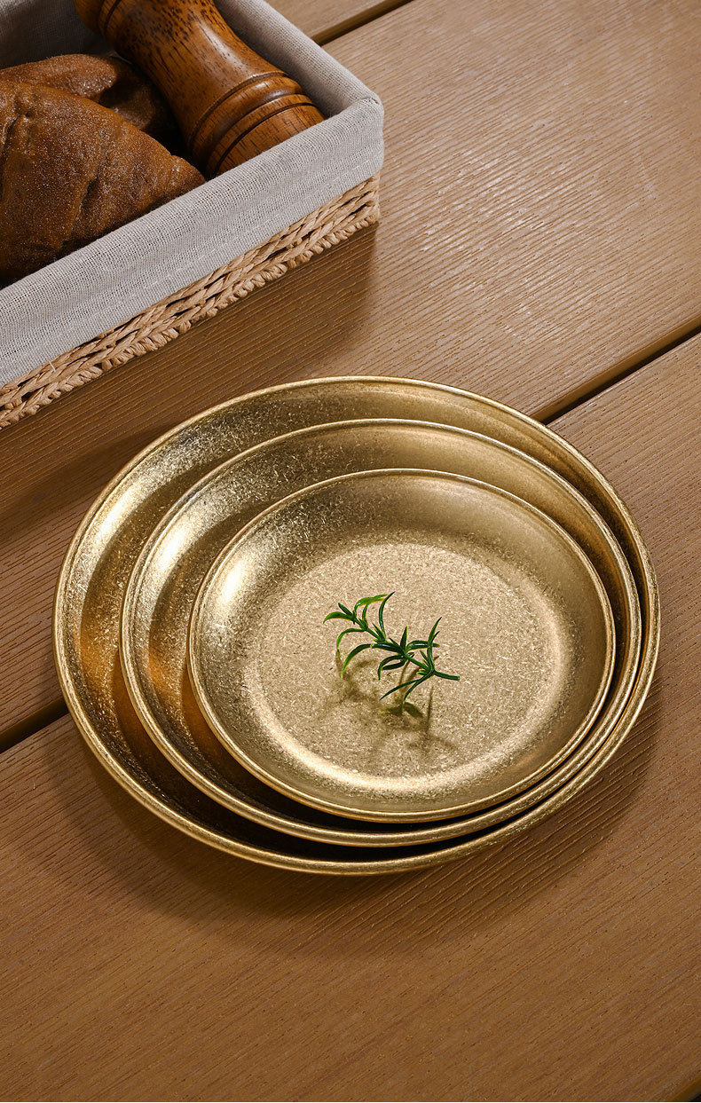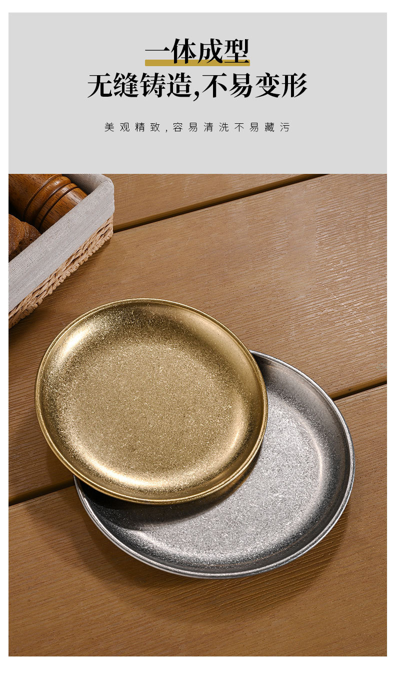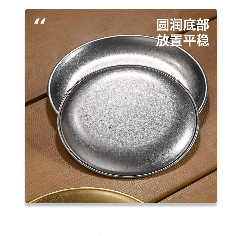한국식 스테인레스 스틸 디스크, 오래된 커피 숍 트레이 과일 플레이트 디저트 얕은 플레이트 플랫 플레이트 빈티지 식기