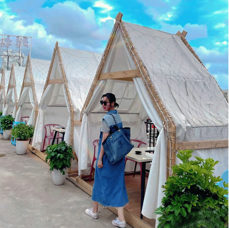 트라이앵글 텐트 테라스 냄비 오두막 바베큐 야외 캠핑 캠프 스타 홈스테이 케이터링 네트 연예인 방수 텐트