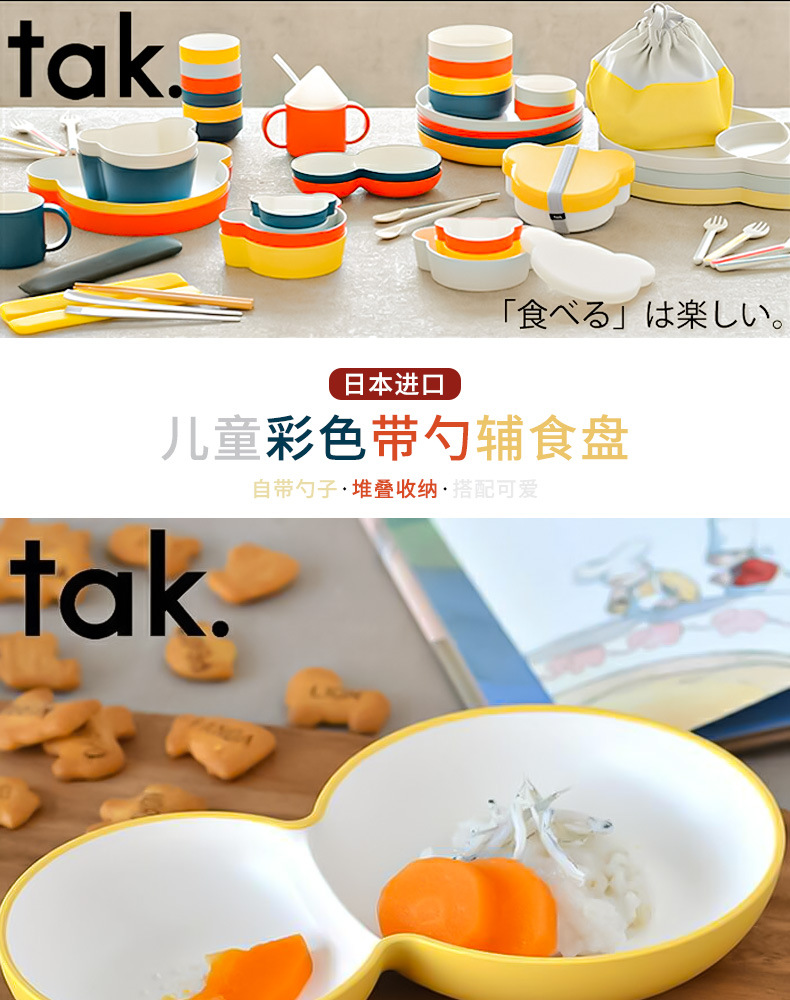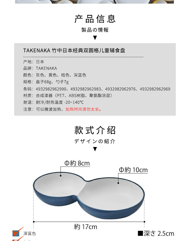TAKENAKA TAKENAKA 일본 클래식 더블 라운드 격자 무늬 어린이 야채 그릇 세트 디너 플레이트 먹이 식기 세트 새로운 스타일스토어 가기