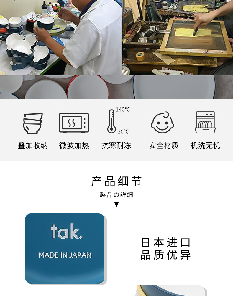 TAKENAKA TAKENAKA 일본 클래식 더블 라운드 격자 무늬 어린이 야채 그릇 세트 디너 플레이트 먹이 식기 세트 새로운 스타일