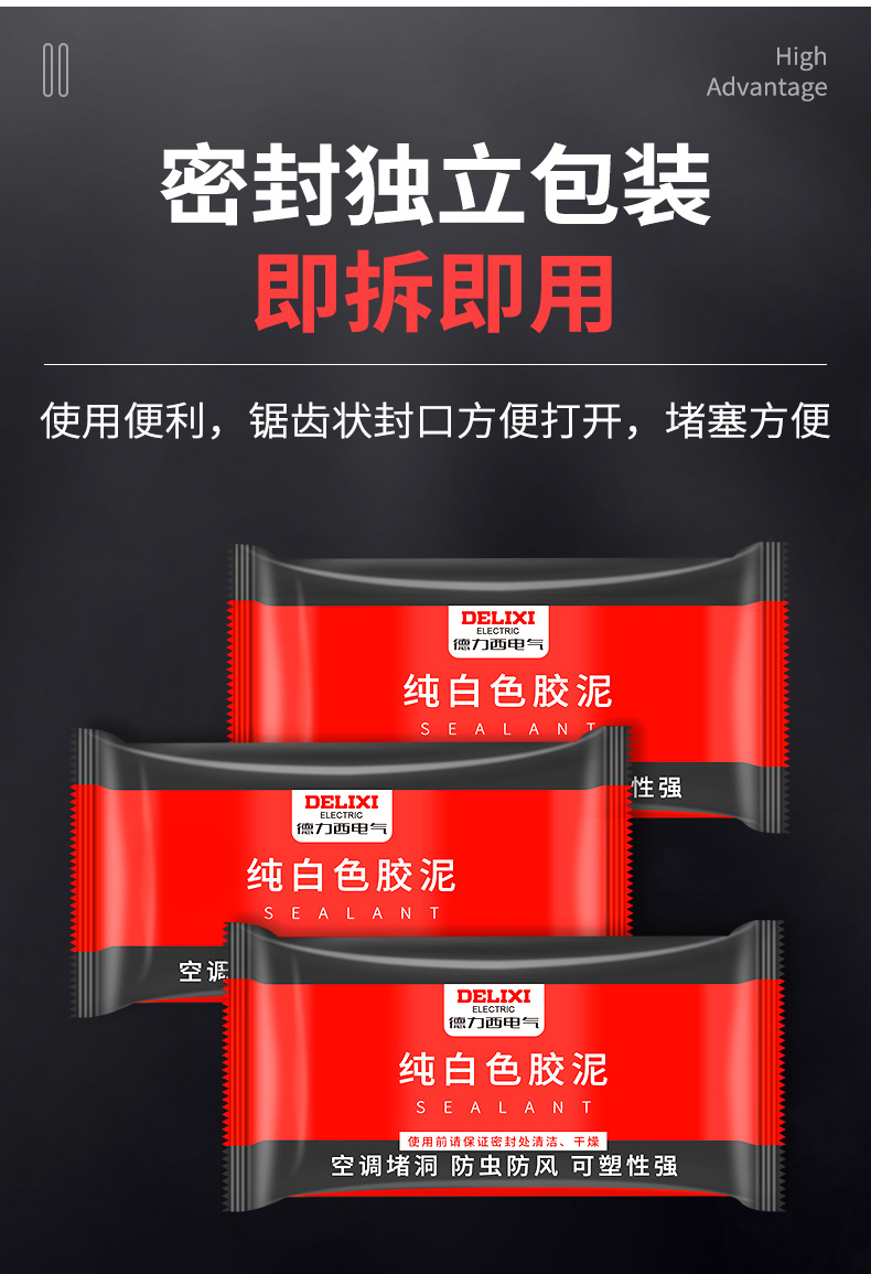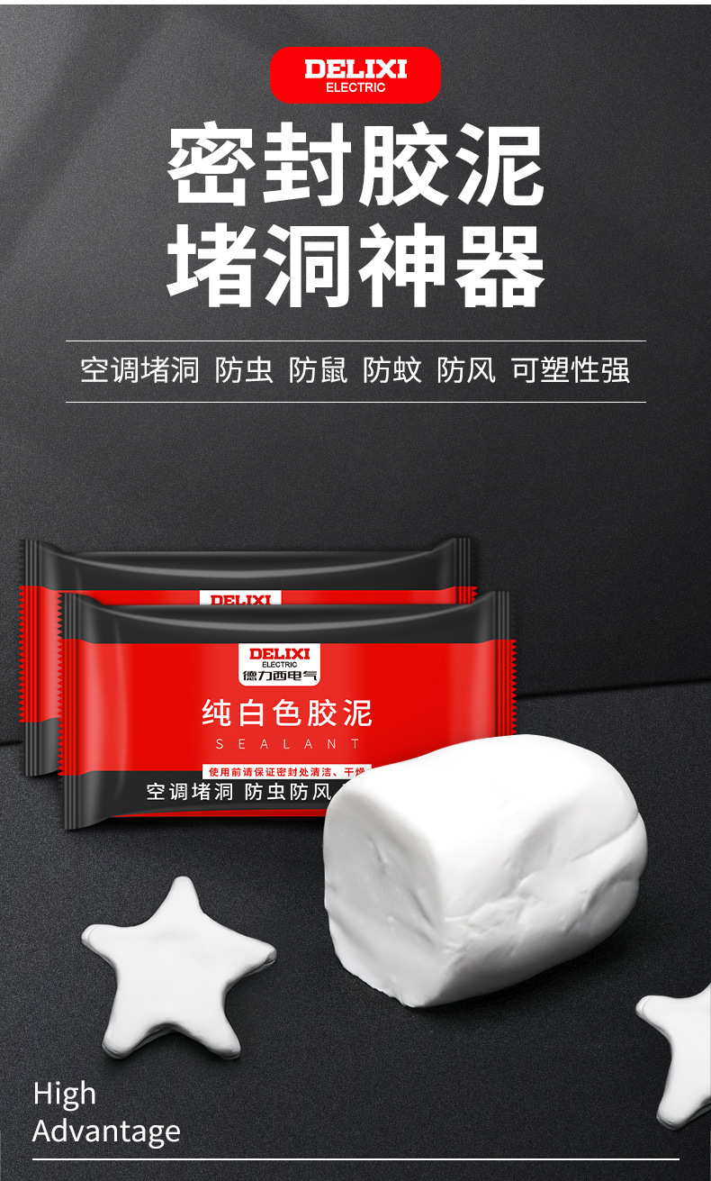 德力西密封胶泥堵下水道封实胶补墙洞宿舍空调孔密封橡皮堵塞胶泥批发