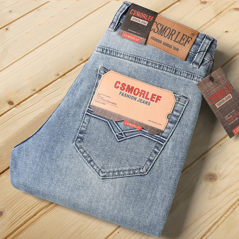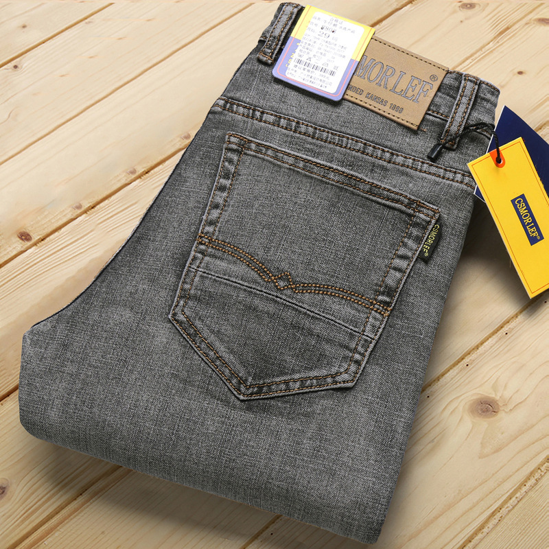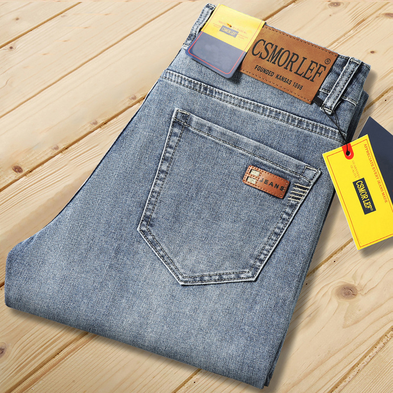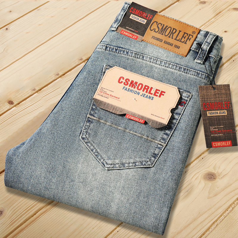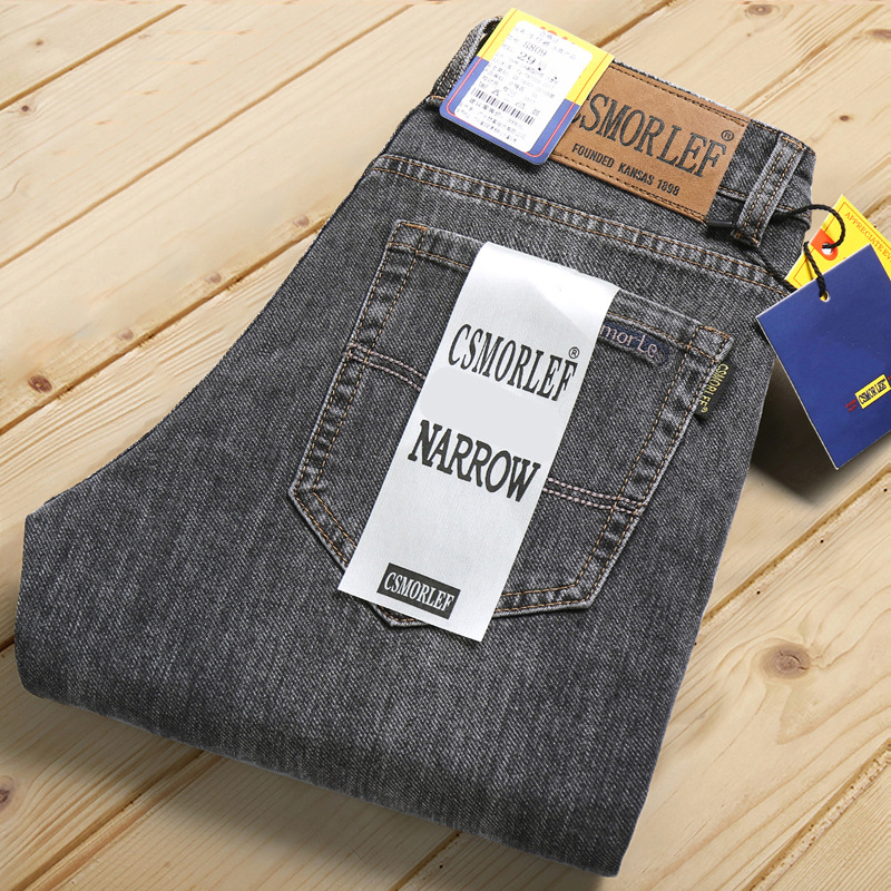 CSMORLEF 남성용 청바지 가을 겨울 신축성 있는 스트레이트 루즈핏 비즈니스 레트로 빈티지 남성용 긴바지