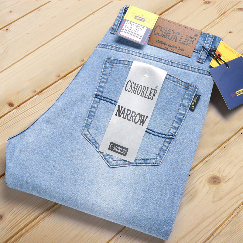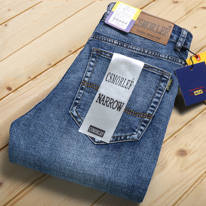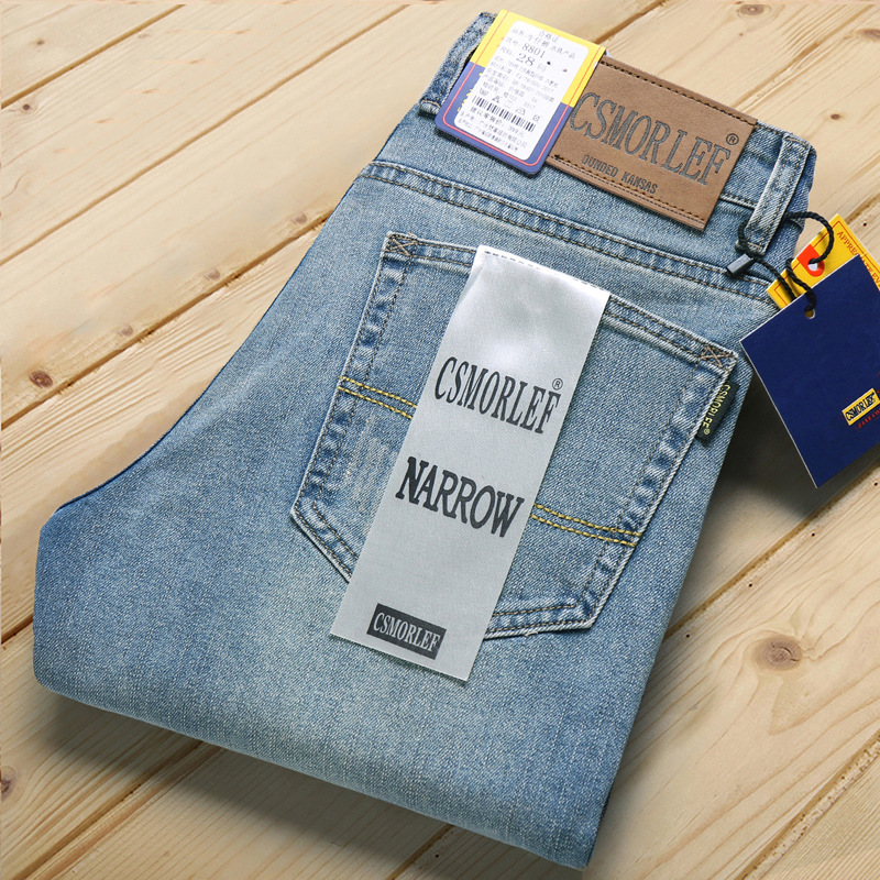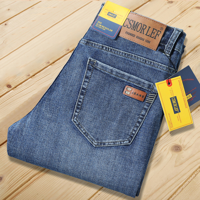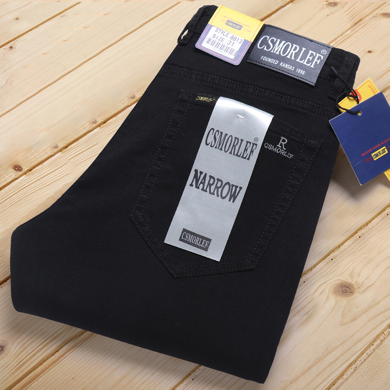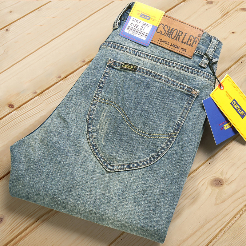 CSMORLEF 남성용 청바지 가을 겨울 신축성 있는 스트레이트 루즈핏 비즈니스 레트로 빈티지 남성용 긴바지