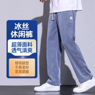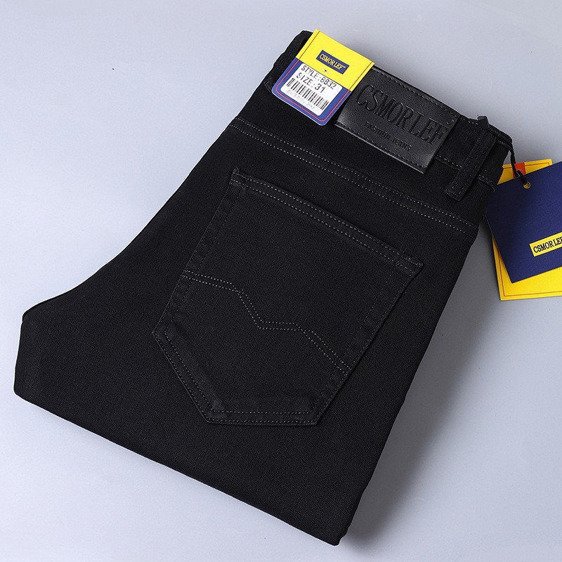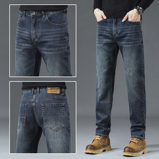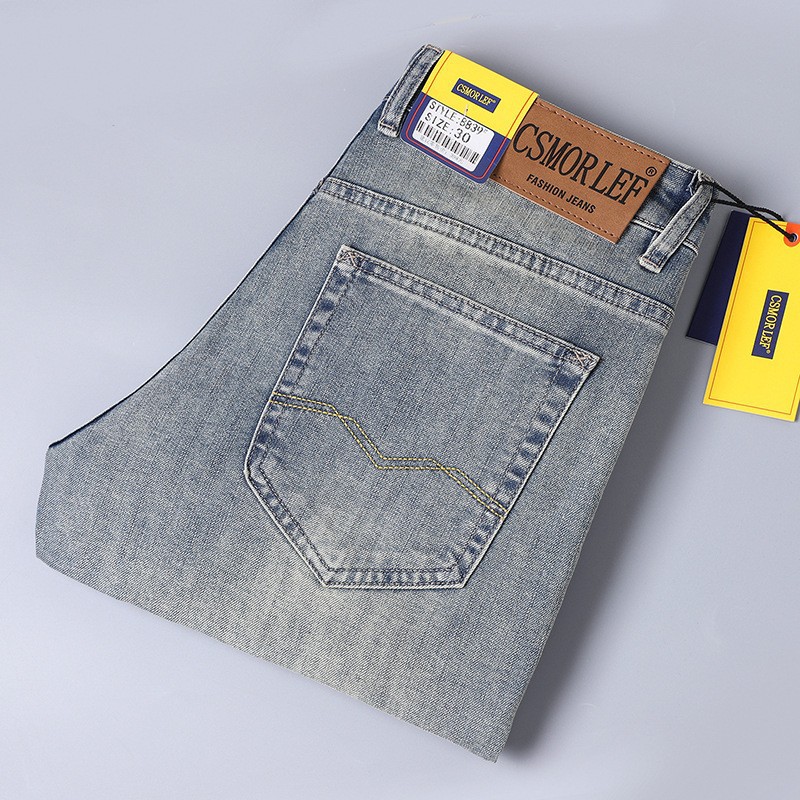 CSMORLEF 청바지 남성 봄, 가을 신축성 있는 스트레이트 루즈핏 비즈니스 레트로 향수 남성복 긴바지 남성 스타일스토어 가기
