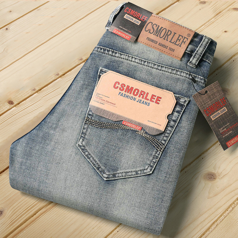CSMORLEF 남성용 청바지 가을 겨울 신축성 있는 스트레이트 루즈핏 비즈니스 레트로 빈티지 남성용 긴바지스토어 가기