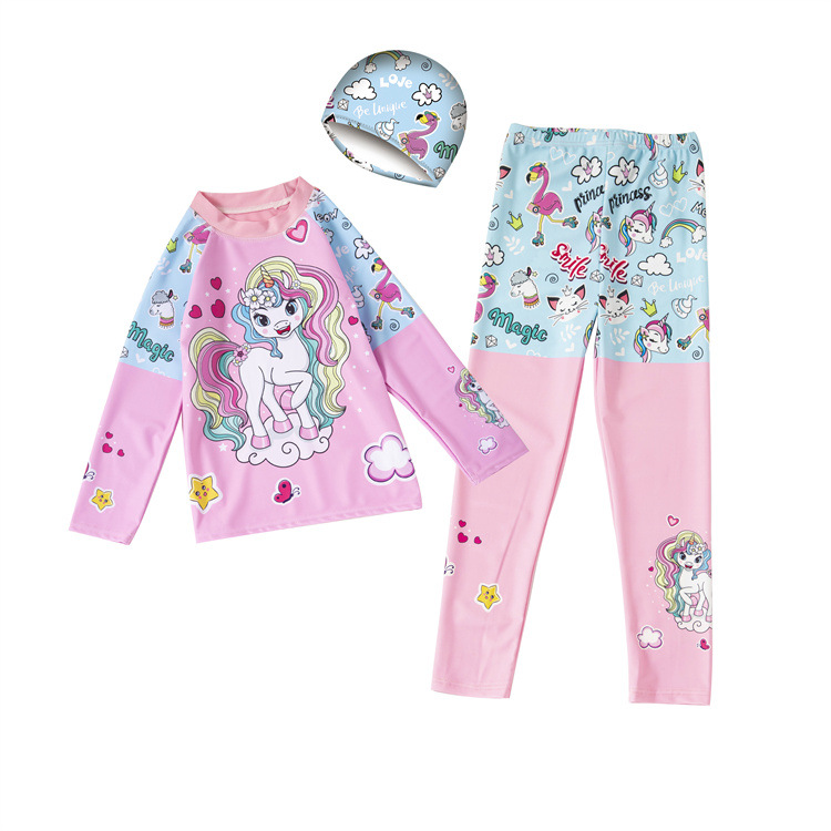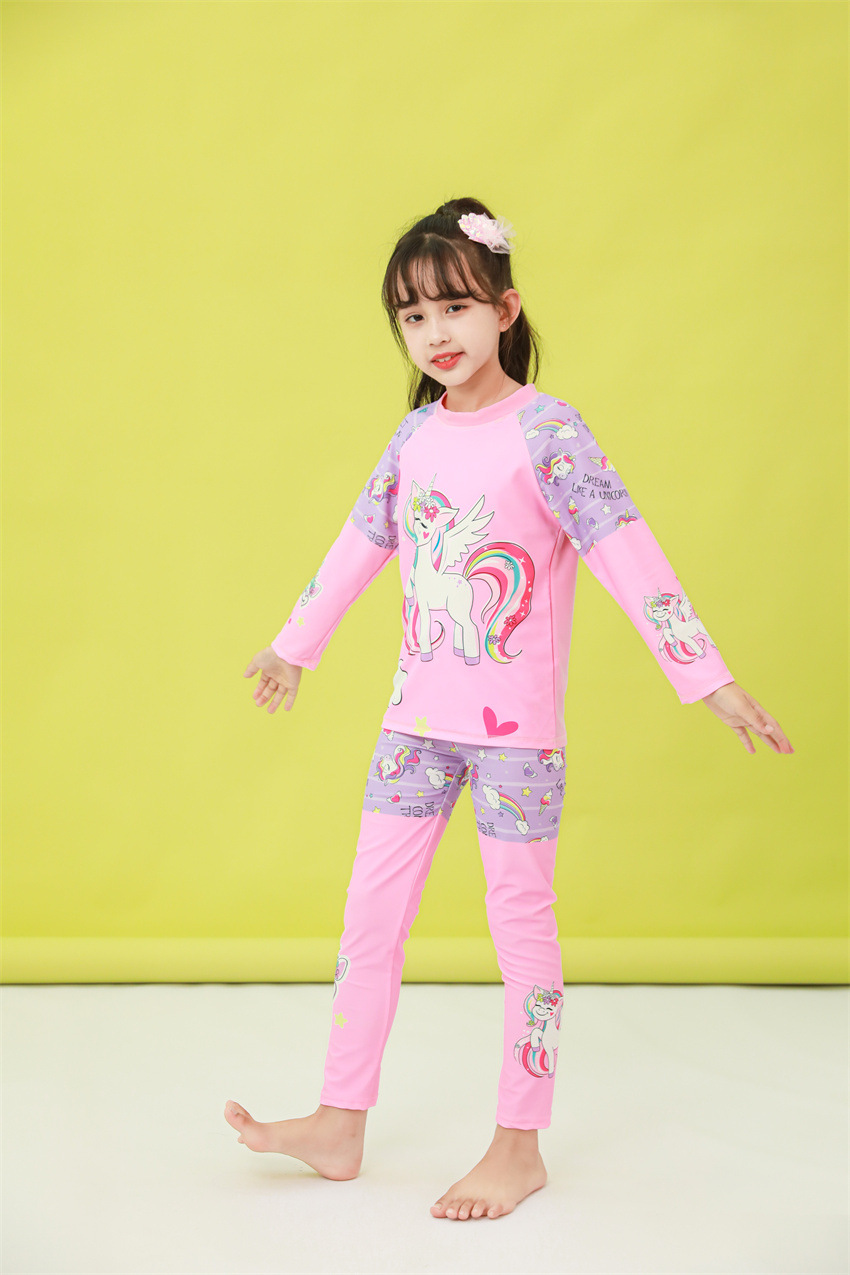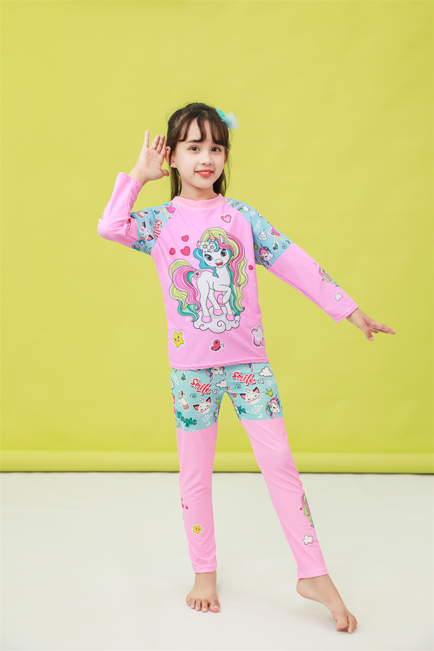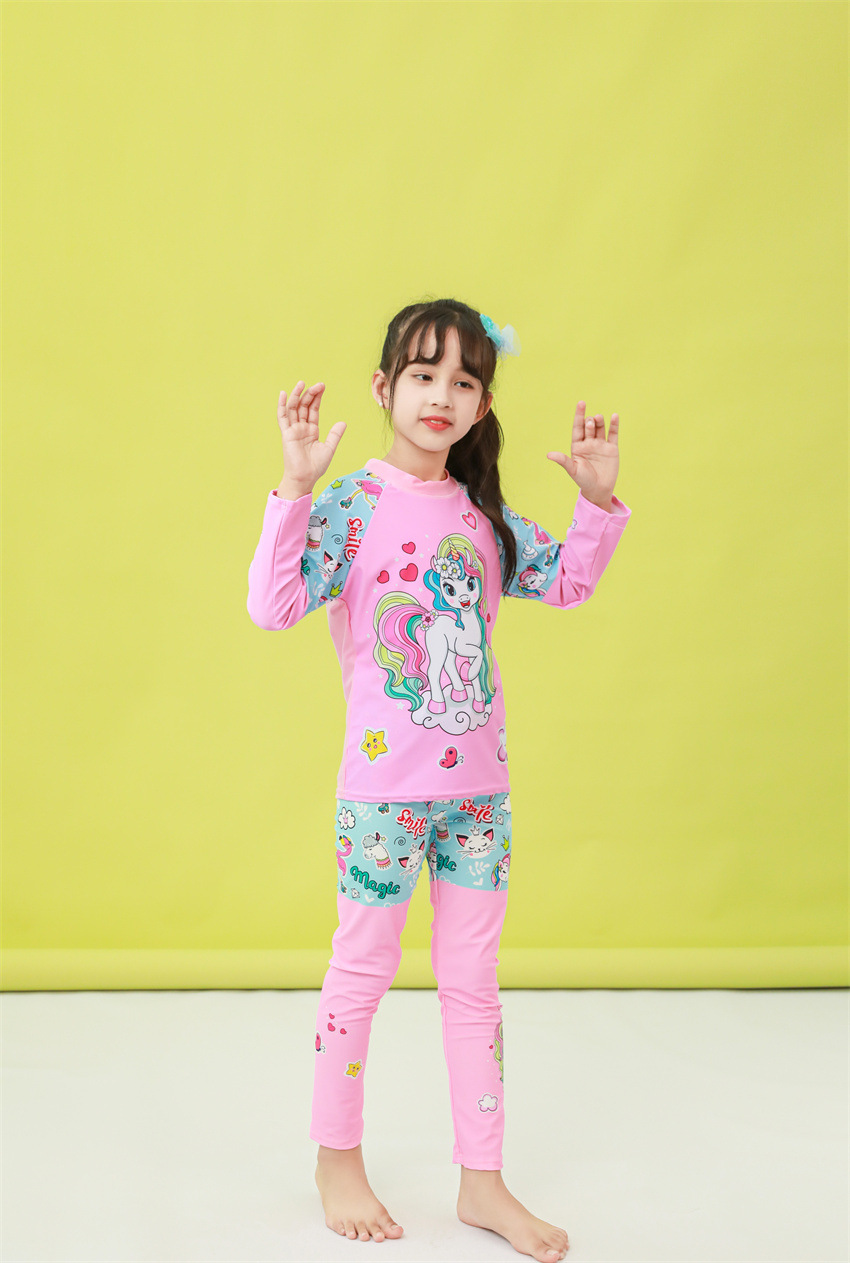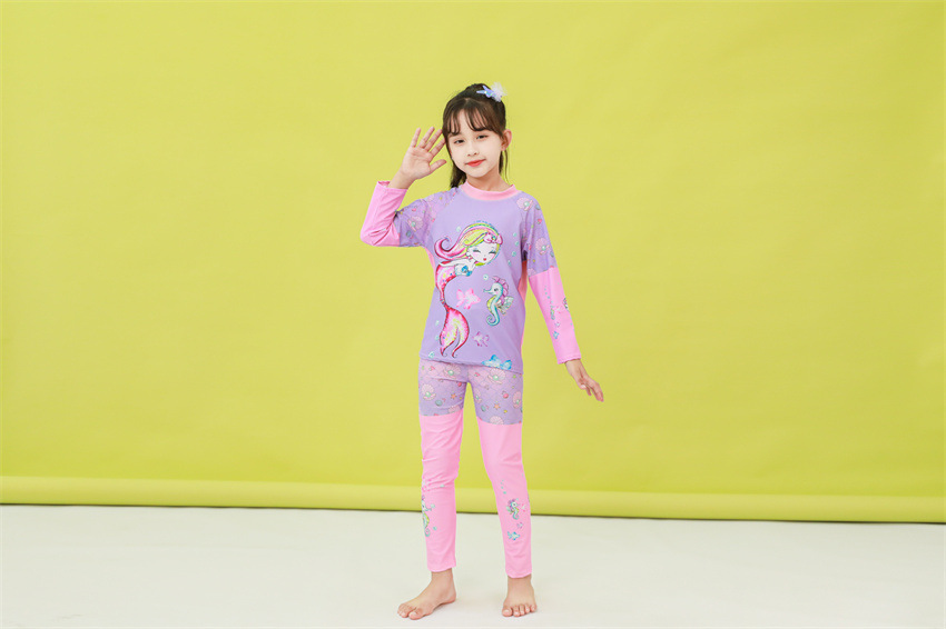 긴팔 아동 수영복 소녀 소형 큰 원피스 선 스크린 만화 수영 트렁크 학생 온천 속건 수영복 도매스토어 가기